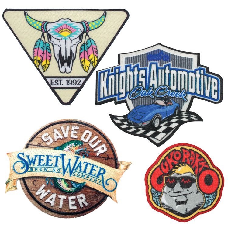 Includes a custom shape patch with full color sublimation on top of an embroidered background