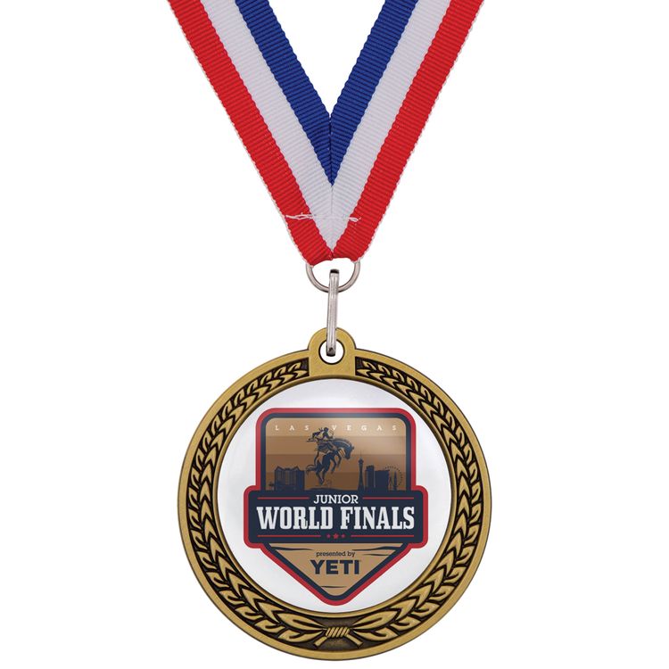 Need medals fast? Honor top competitors in sports, academics and more with these speed medals. The 2.5" die cast alloy medal features a classic wreath border and an extra large full color one-sided poly dome imprint. Choose from antique brass, antique nickel or antique copper finishes for first, second and third place contenders. It's a great idea for charity 5 and 10K runs and the solution for your quick turnaround and low quantity medal needs. Add an optional 7/8" neck ribbon with quick release clip to complete your presentation.