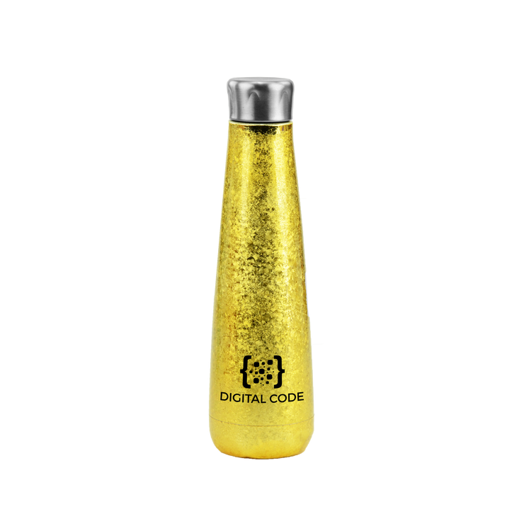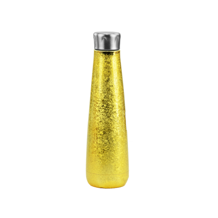 16 oz. Metallic Ice Peristyle Bottle with a screw top cap, 360-degree etched design, and stainless steel, vacuum-insulated design. Additional decoration charges may apply.