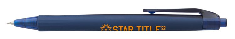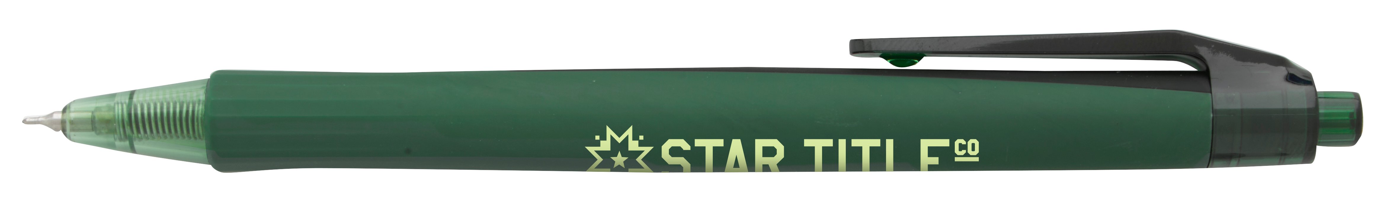 Sneak up on your next writing project with the Ninja Pen. Thanks to its innovative silent clicker mechanism, it lets you write quietly anytime, anywhere. The smooth 0.5mm ultra-fine gel ink adds to its whisper-quiet design, making it perfect for those who want to write as discreetly as a ninja. Contains 34% post-consumer recycled ABS. Plus, it comes with fraud-resistant ink. Additional decoration charges may apply.