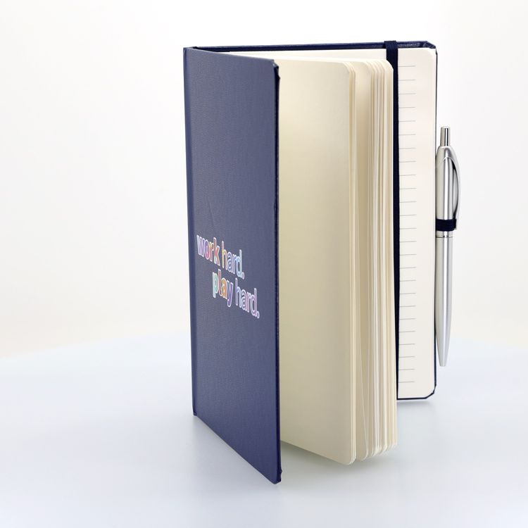 This premium notebook pen combo is a great give-away for any show or meeting! Additional decoration charges may apply.