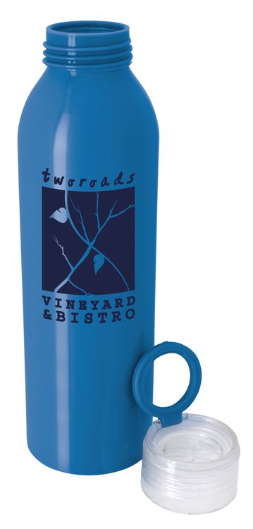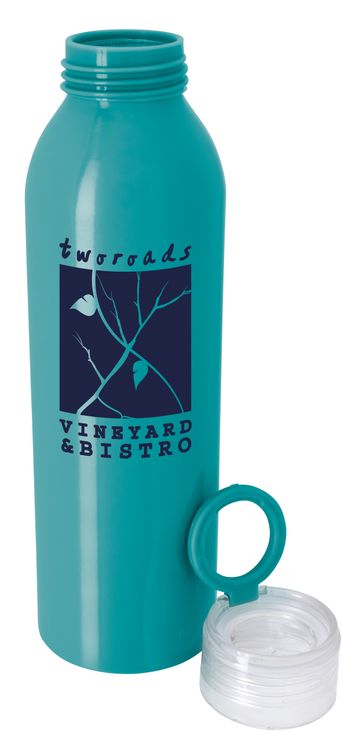 This aluminum bottle has a great price, a calming color palette, and a convenient carry loop for on-the-go hydration. The clear screw-on lid not only adds interest but is also leak proof. Additional decoration charges may apply.