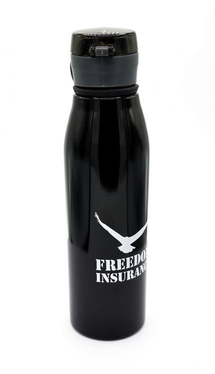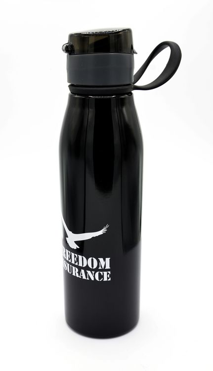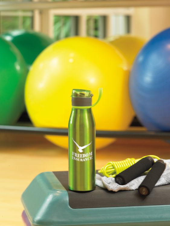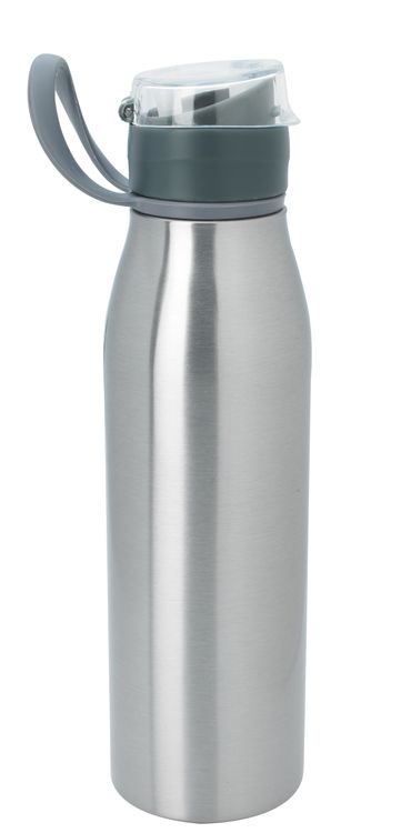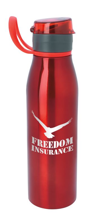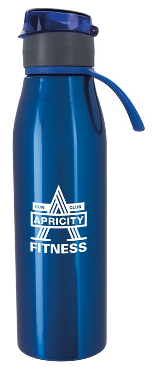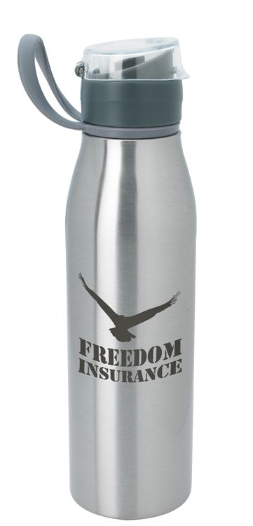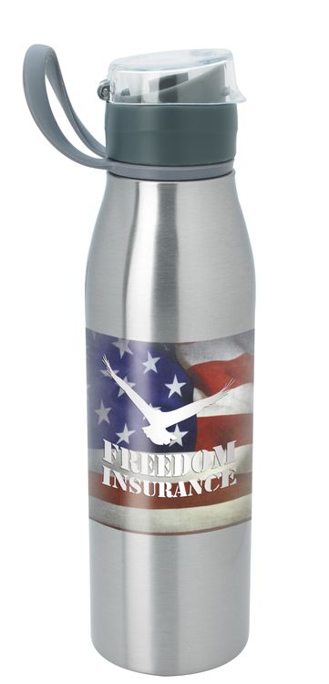 This 25 oz. water bottle with flip-top lid is great for the gym, hiking, or any sporting event. The handy rubber loop makes it easy to take it with you anywhere! Additional decoration charges may apply.