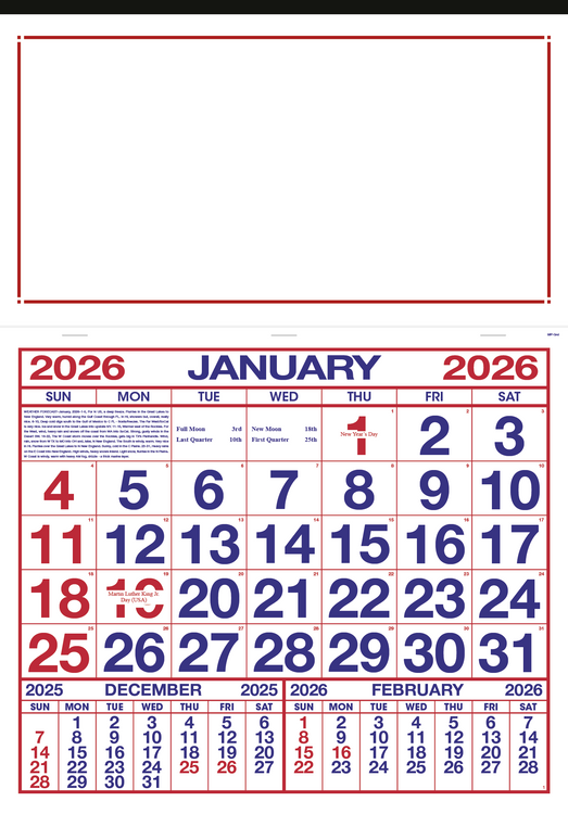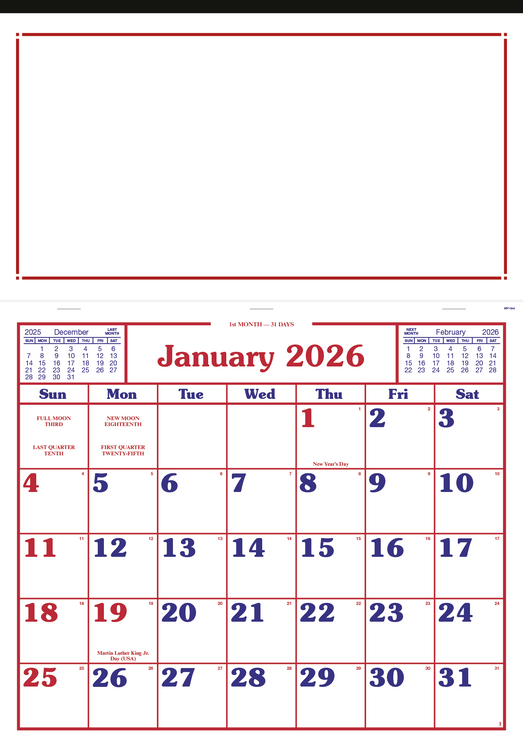 Product Color Information Skinner & Kennedyâ„¢ Billboard Apron Calendar.2026Product Color Information 85P, 80P Large Number, 88P 3 Month