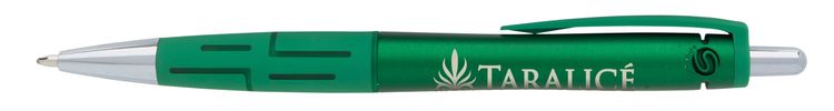 Show off your brand’s innovative style with the ultramodern look of this metallic writing instrument. The richly colored barrel is perfectly balanced by chrome accents, a sleek matching clip and rubberized grip with graphic line detail. Complete with a cut-out Souvenir® icon near the plunger to really elevate your brand’s next promotion. Pair with the #56036 Souvenir® Daven Mechanical Pencil to create a gift set that everyone would love to receive. Additional decoration charges may apply.
