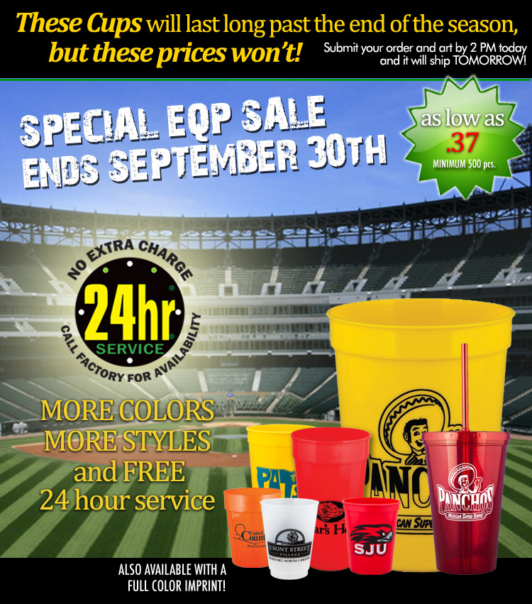 Smooth Wall Stadium Cup Sale and Free 24 Hr. Svc.
