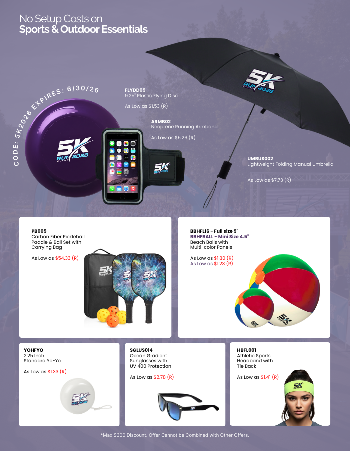 No Setup Costs on Sports & Outdoor Essentials