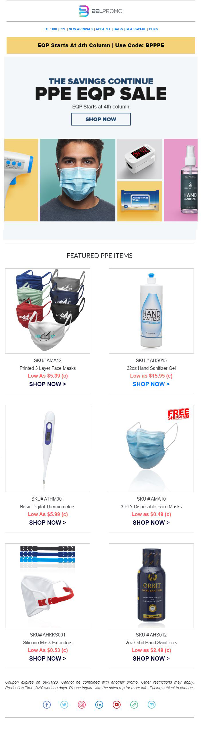 TOP 100 | PPE | NEW ARRIVALS | APPAREL | BAGS | GLASSWARE | PENS