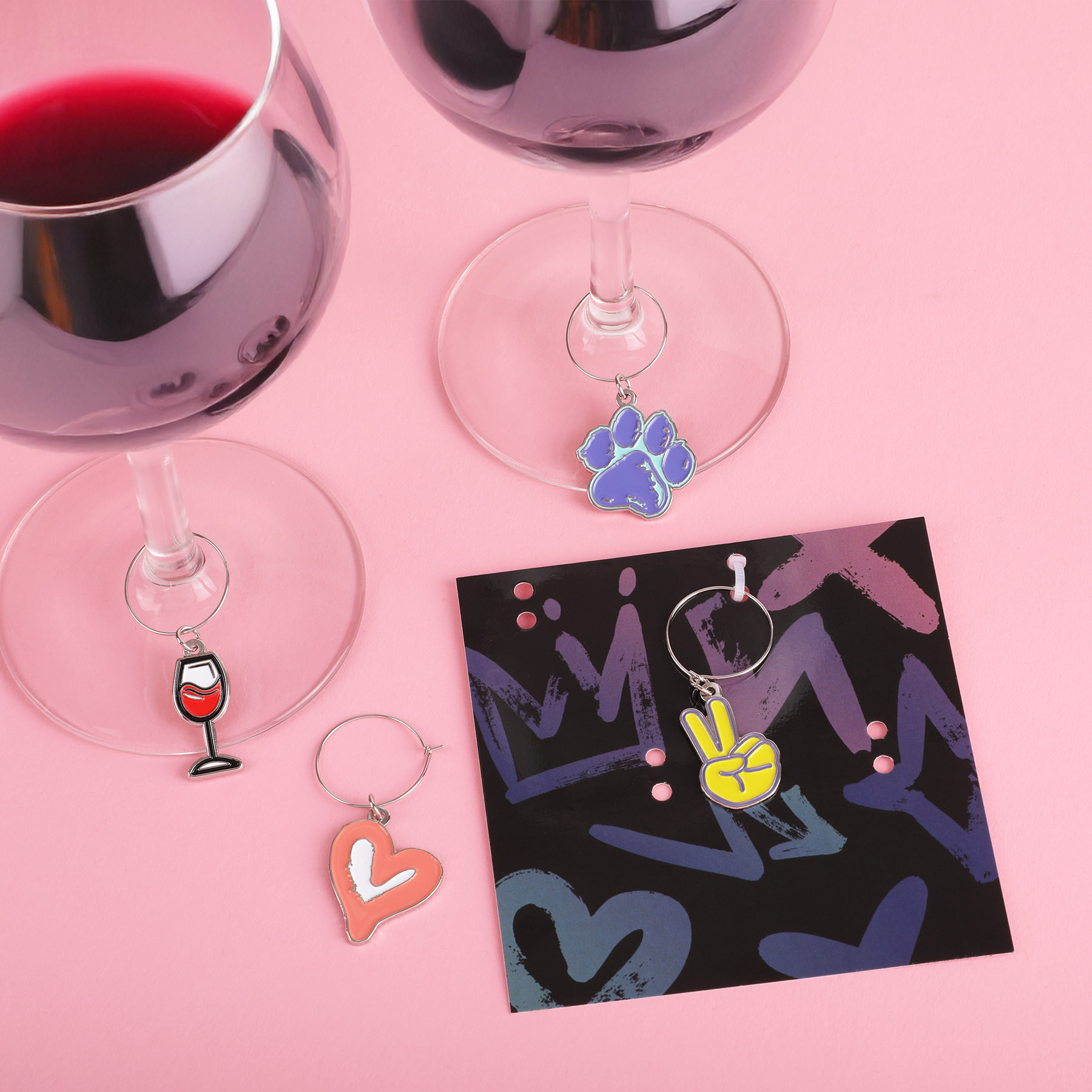 Each charm has a metal ring that loops around a glass stem for easy identification