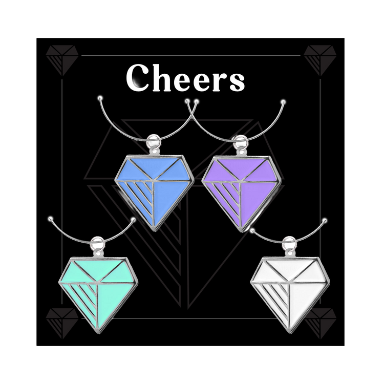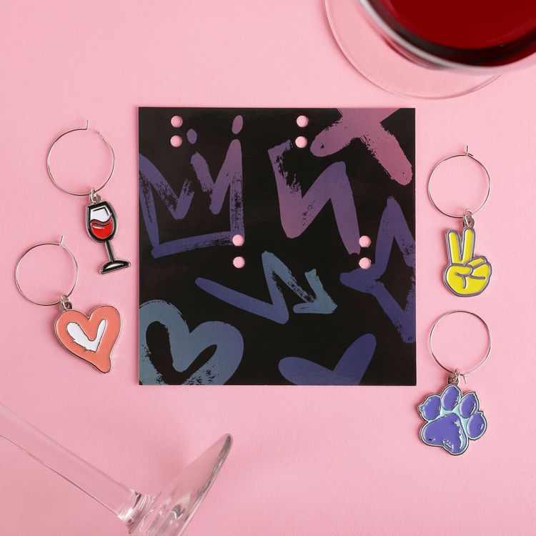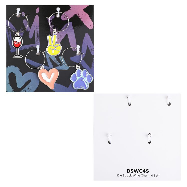 Set of four diestruck wine charms on a full-color, double sided backer card