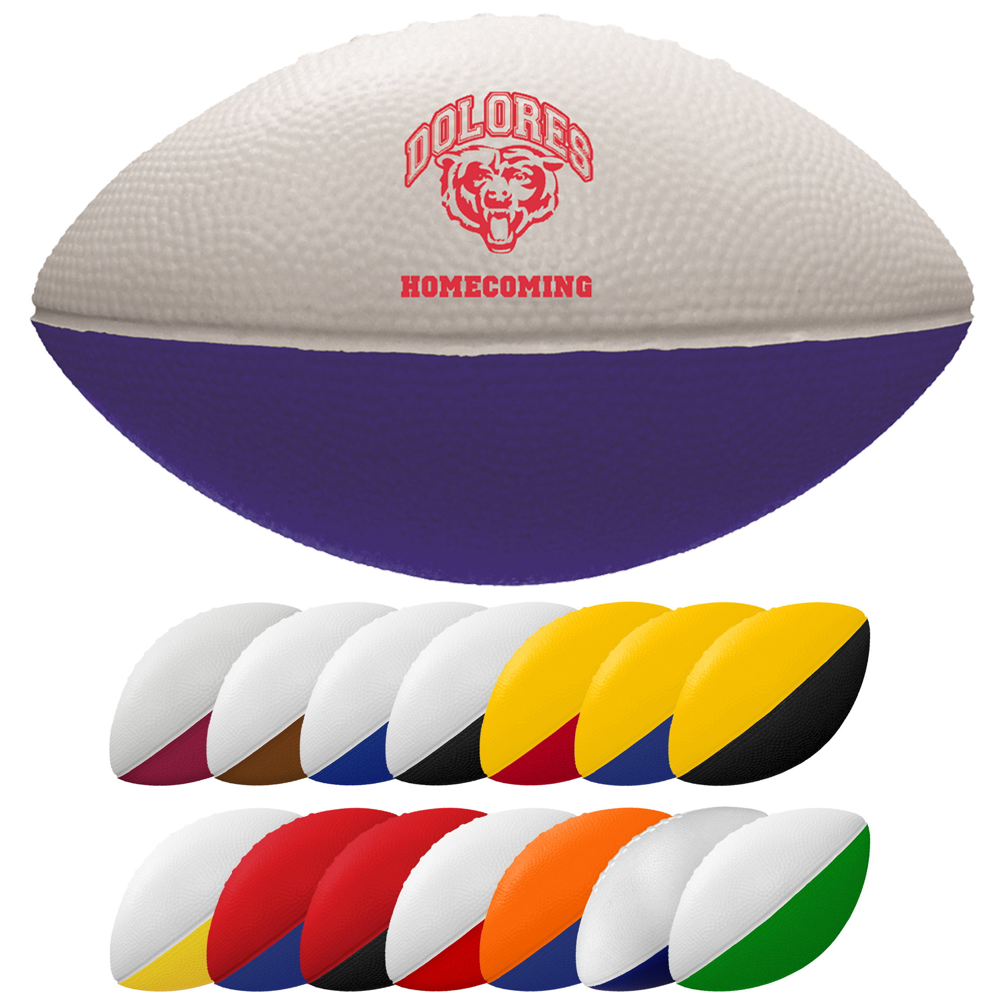 7" Mini 2-Toned foam footballs are durable and soft. Printing surface is textured, bold graphics recommended.