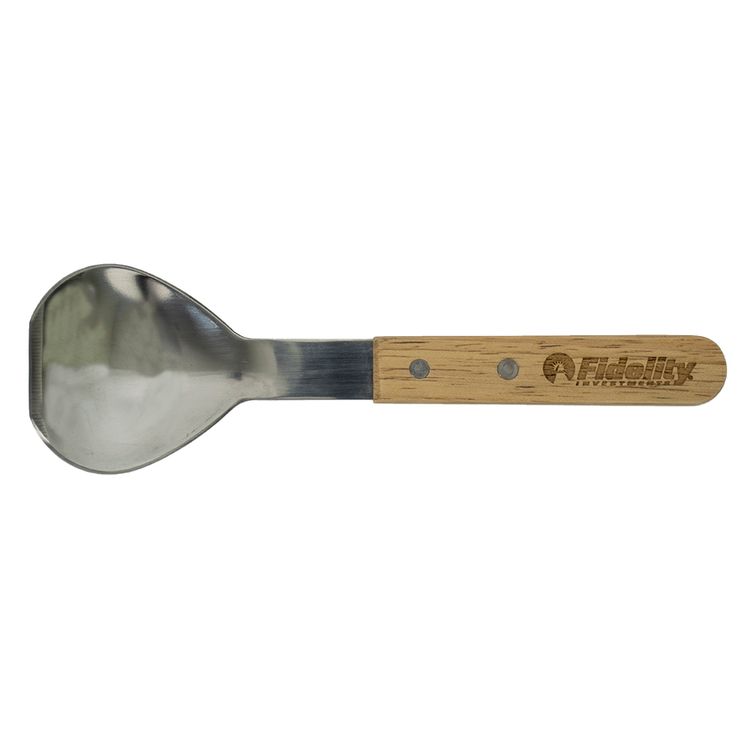 The arctic scoop is a heavy duty metal ice cream spade with sturdy wood handle and a beveled edge for easy scooping. We do not recommend a white imprint on this item. Laser engraving available on this item, contact for pricing. Custom packaging available for an upcharge.