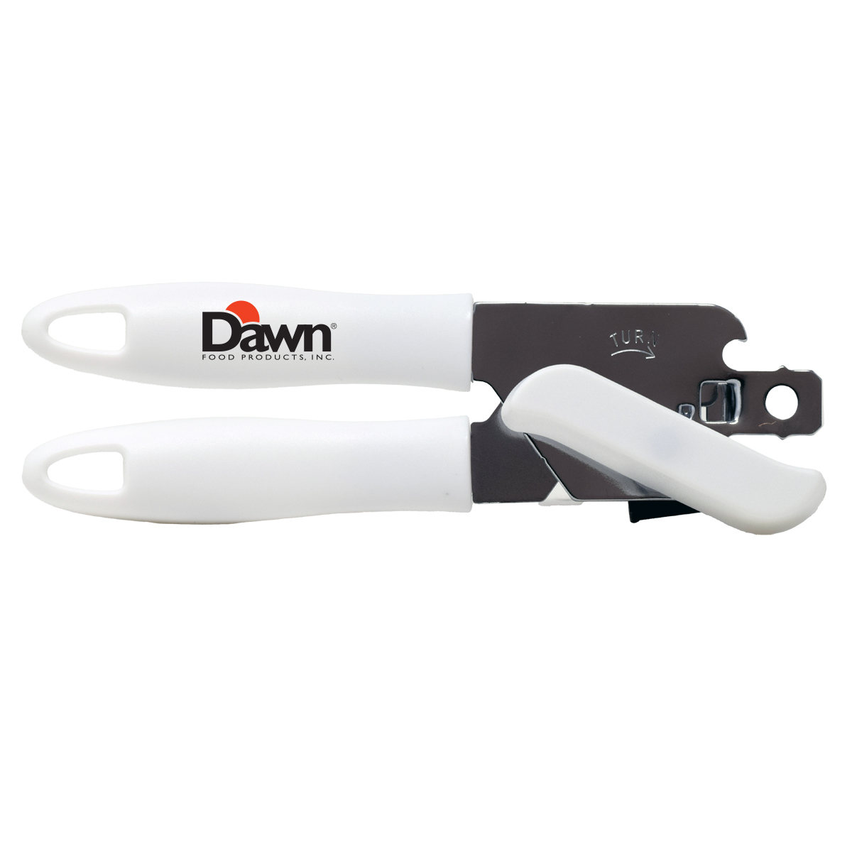 Designed for everyday use, it features a smooth cutting mechanism for easy can opening and an integrated hook-style bottle opener for added convenience. The durable white handle offers a comfortable, secure grip and provides a clean surface ideal for logo placement. Perfect for giveaways, customer appreciation, or branded kitchen essentials, this can opener delivers daily utility while keeping your brand visible.