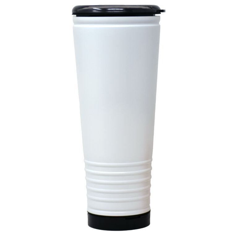 23.5 oz capacity insulated tumbler with dual-purpose drink and cheer design.