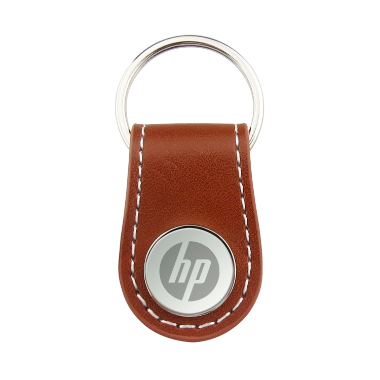 Standard leather like key snap with shinny silver 3/4" laser engraved emblem