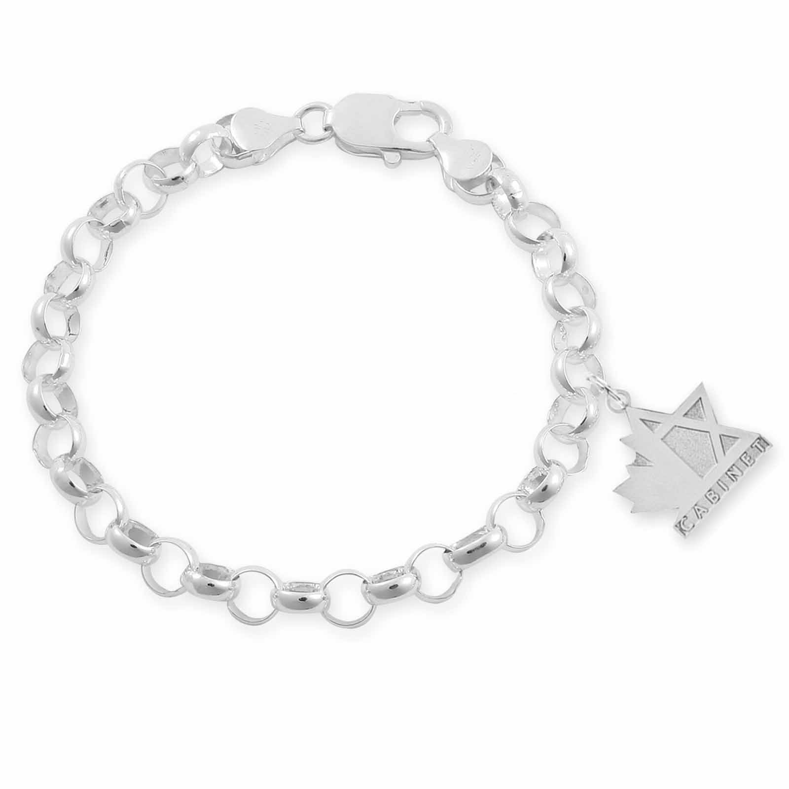 Sterling silver bracelet. Emblem charms and lobster claw are extra. Please refer to lapel pins emblems and attachements prices. Design may vary slightly.