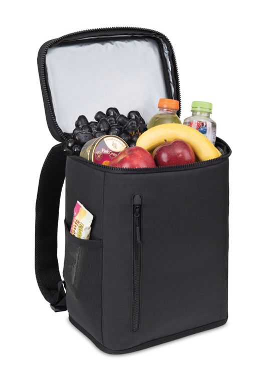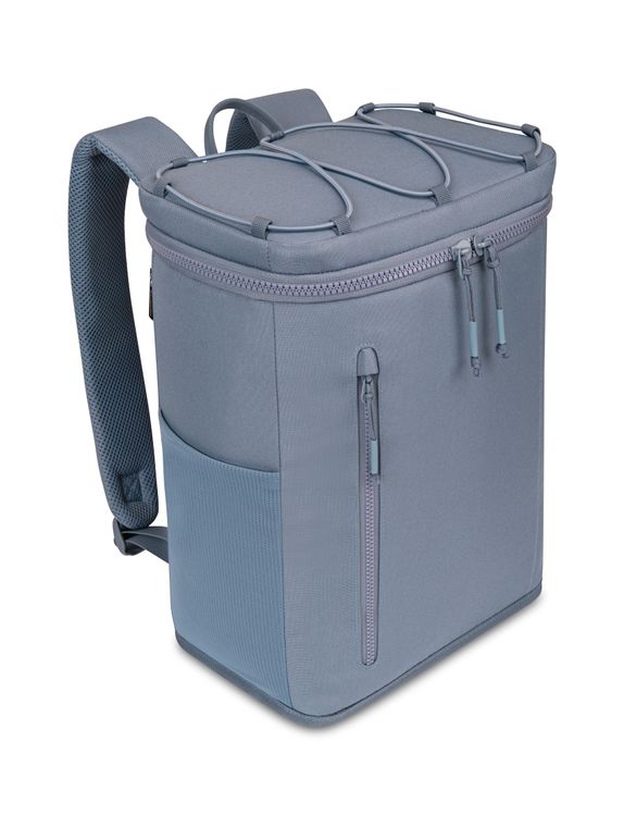 Hands-free and built for adventure, the Acadia Backpack Cooler combines outdoor style with recycled materials. Its insulated main compartment holds 32 cans, with mesh side pockets, a zippered front pocket, and an elastic top cord for extra gear. Comfortable straps make it easy to carry anywhere. Top grab handle and adjustable, padded backpack straps for dual carry options Backpacks straps measure 18" - 38" Wipe interior and exterior surfaces clean before storing and between uses To prevent stains and odors, empty cooler of contents after use Light dirt or stains can be cleaned with water or mild detergent Holds 32 cans PVC free product SBN 1.90 Additional decoration charges may apply.