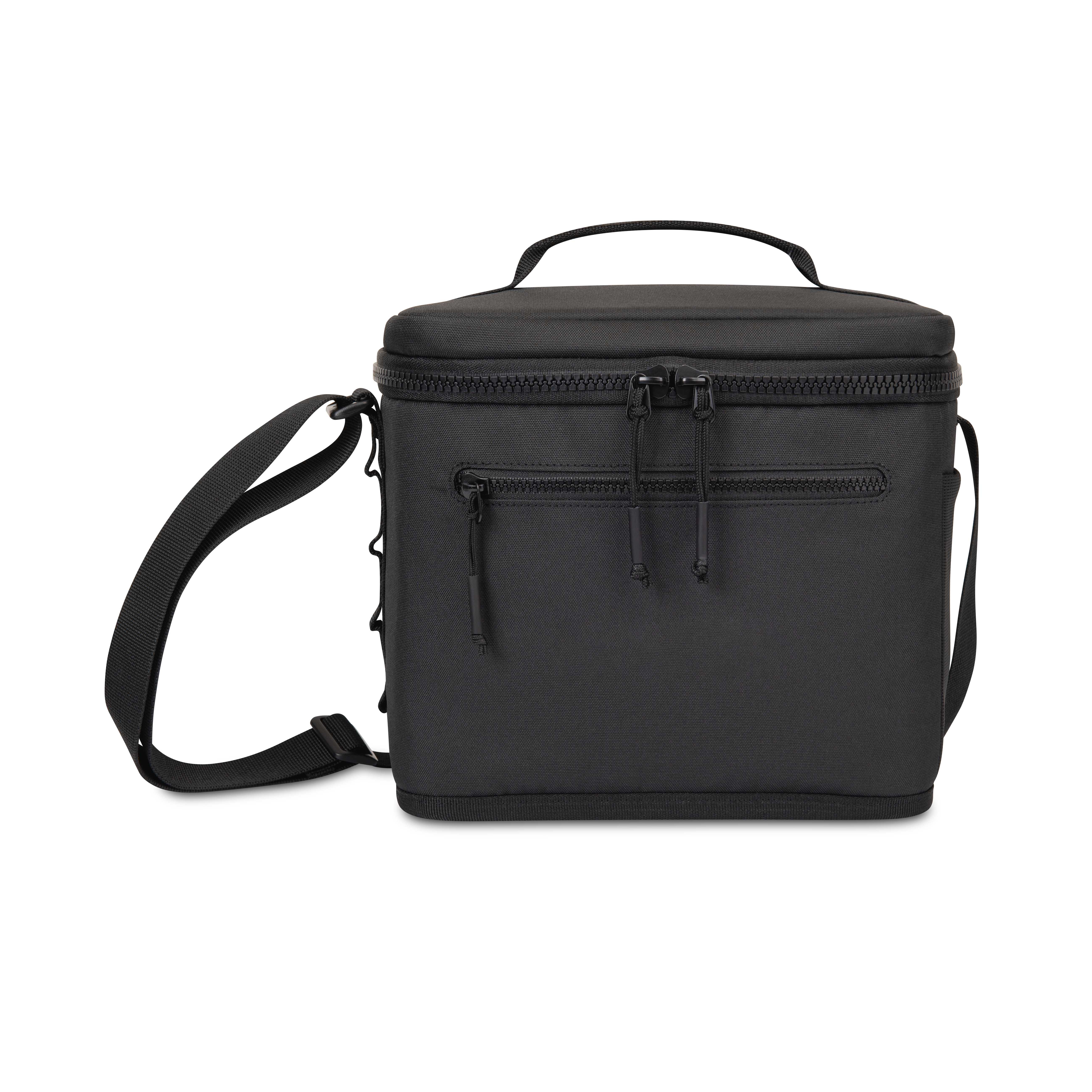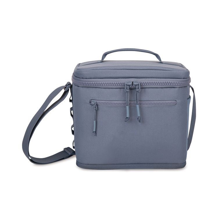 The Acadia Box Cooler brings a fresh, functional edge to classic chill. Made with recycled materials, it holds 16 cans and features a Delrin® zipper, mesh pocket, and daisy chain loops for easy attachment. With a sleek, monochromatic look, it’s ready for trails, tailgates, or lunch on the go. Top grab handle and adjustable shoulder strap for dual carry options Shoulder strap measures 15" - 42" Wipe interior and exterior surfaces clean before storing and between uses To prevent stains and odors, empty cooler of contents after use Light dirt or stains can be cleaned with water or mild detergent Holds 16 cans PVC free product SBN 1.07 Additional decoration charges may apply.