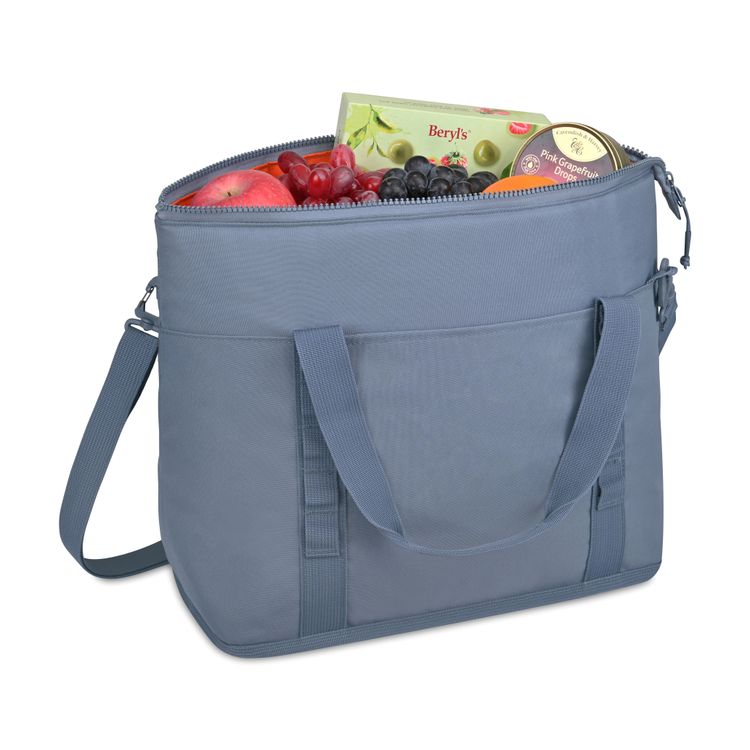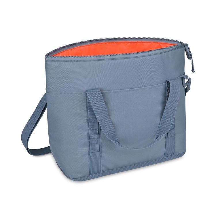 Chill in style with the Acadia Tote Cooler—crafted from recycled materials and designed for outdoor ease. Holds 36 cans with a spacious insulated interior, sturdy Delrin® zipper, mesh and slash pockets, and daisy chain loops for gear. Dual carry handles make it ready for wherever the day takes you. Top grab handle and adjustable, padded shoulder strap for dual carry options Shoulder strap measures 35" - 64" Wipe interior and exterior surfaces clean before storing and between uses To prevent stains and odors, empty cooler of contents after use Light dirt or stains can be cleaned with water or mild detergent Holds 36 cans PVC free product SBN 1.68 Additional decoration charges may apply.