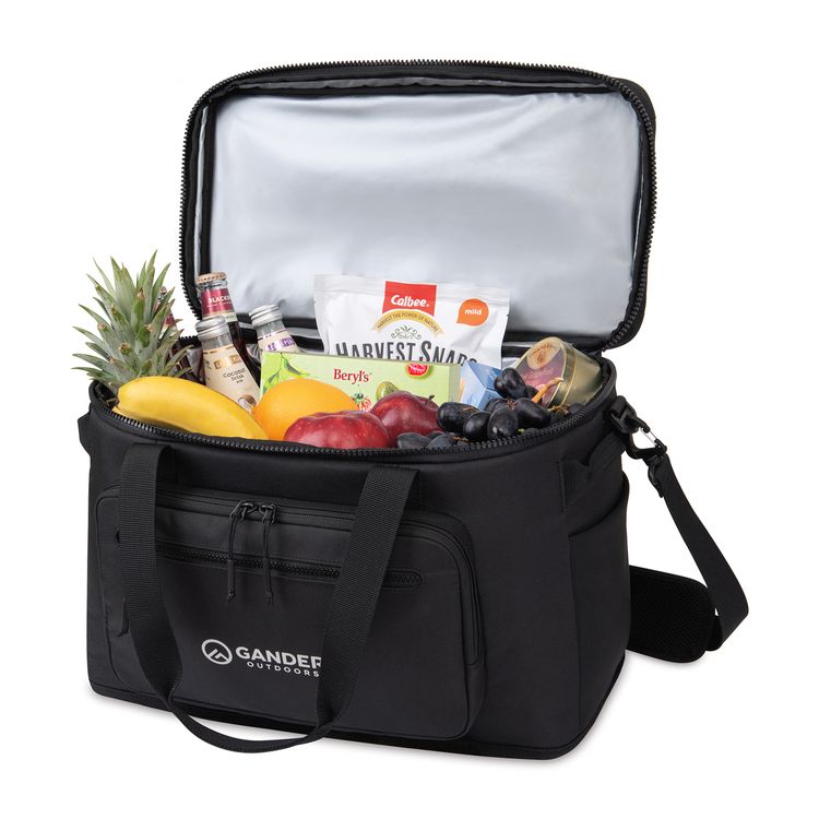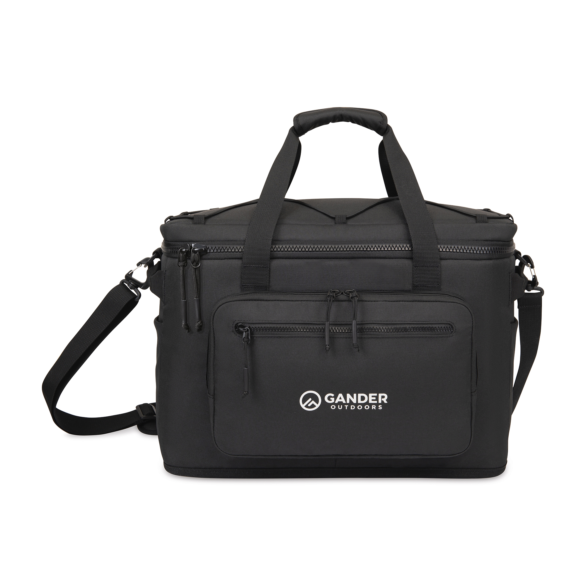 Go big on outdoor adventures with the Acadia XL Box Cooler. Crafted with recycled materials, it holds up to 56 cans and keeps them cold in a sleek, modern design. Features include a rugged Delrin® zipper, multiple pockets, elastic top cord, and adjustable carry options. Spacious, functional, and built to move with you. Top padded grab handle and adjustable and removable shoulder strap for customizable carry options Shoulder strap measures 35" - 64" Wipe interior and exterior surfaces clean before storing and between uses To prevent stains and odors, empty cooler of contents after use Light dirt or stains can be cleaned with water or mild detergent Holds 56 cans PVC free product SBN 2.72 Additional decoration charges may apply.