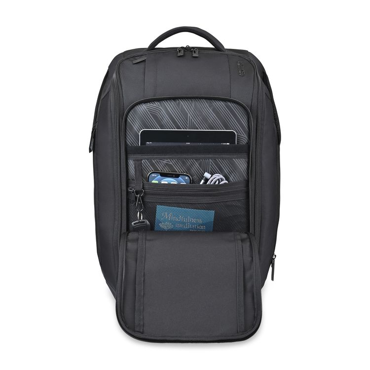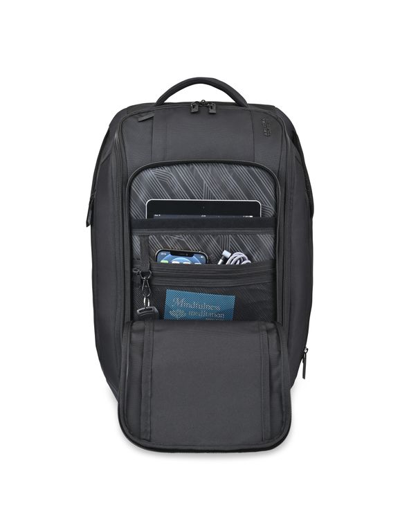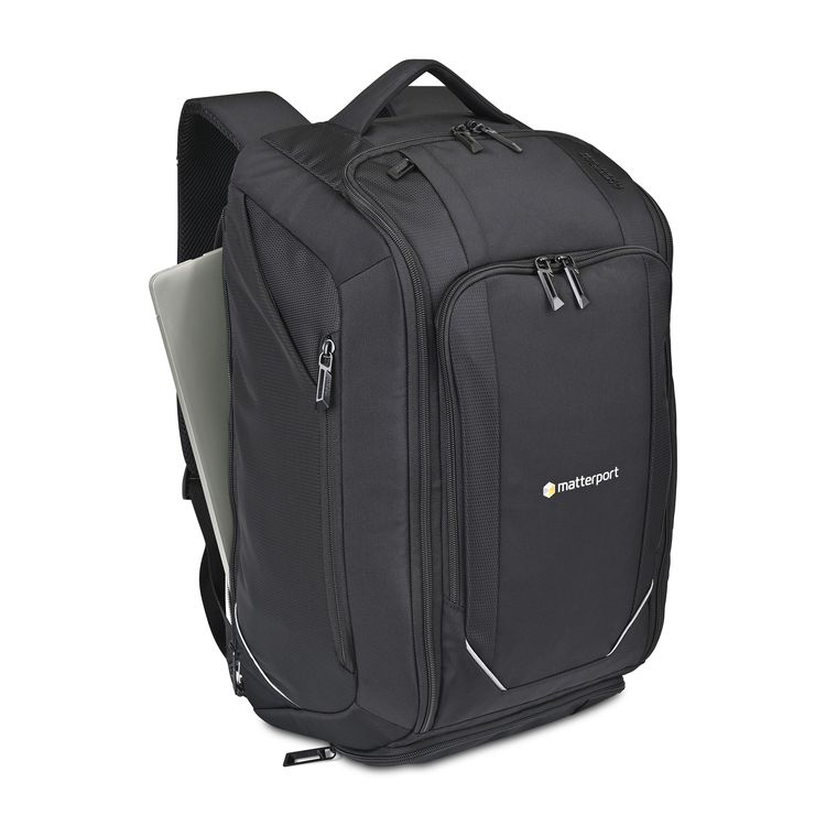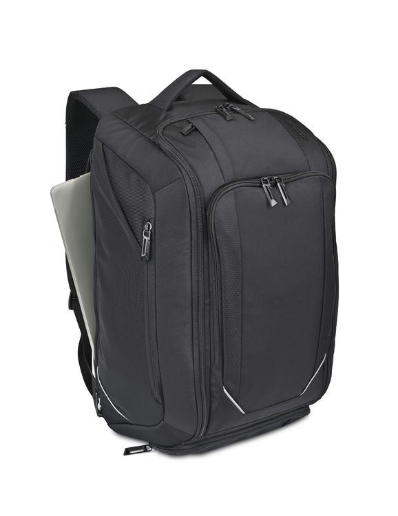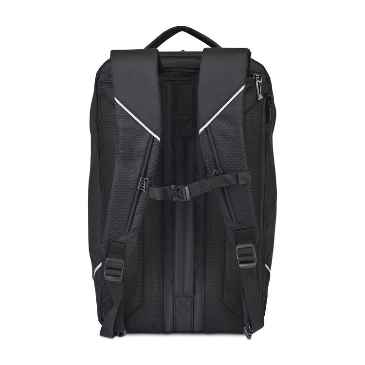 Go from work to weekend with the Zoom Turbo Convertible Backpack. Use it as a backpack or duffel with a quick switch. Features include a U-shaped opening, padded laptop (16”) and tablet (10”) sleeves, mesh pockets, water bottle holders, and a shoe tunnel. Tuckaway straps, trolley strap, and padded handle add travel ease. PVC-free design keeps gear organized and protected. Tuckaway shoulder and duffel straps Trolley strap and padded back handle Padded, adjustable shoulder straps PVC Free Product 5.31 Additional decoration charges may apply.