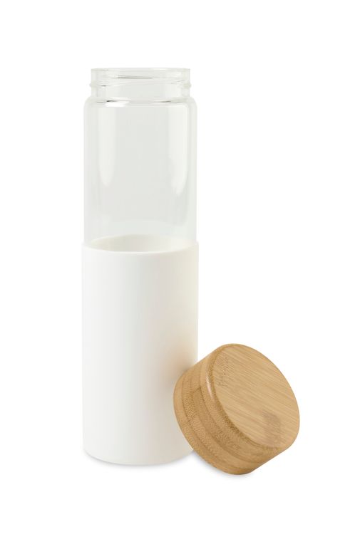 Glass and bamboo materials make for a stylish reusable drinkware bottle