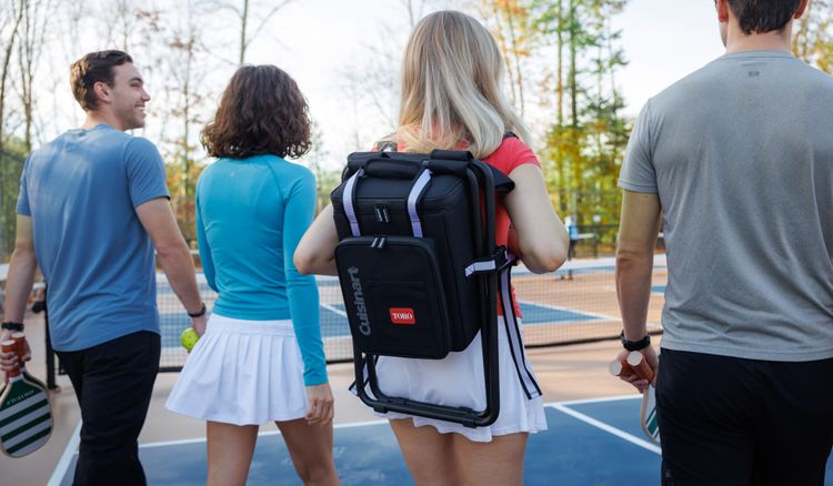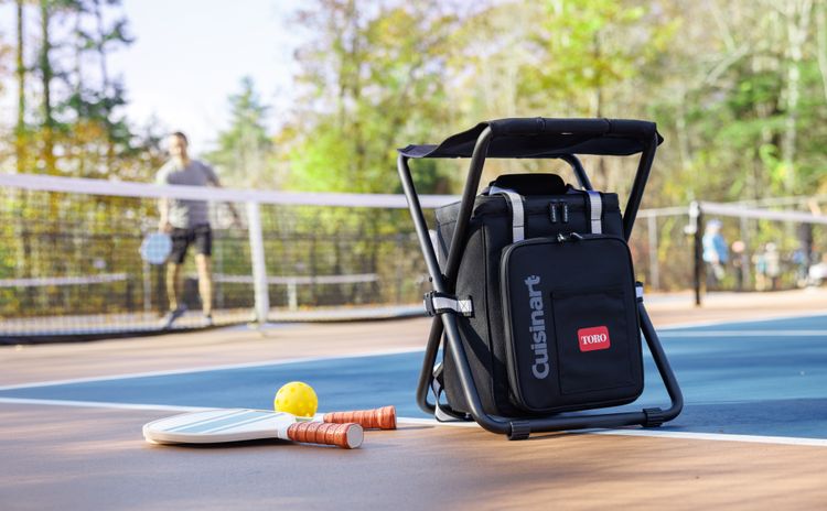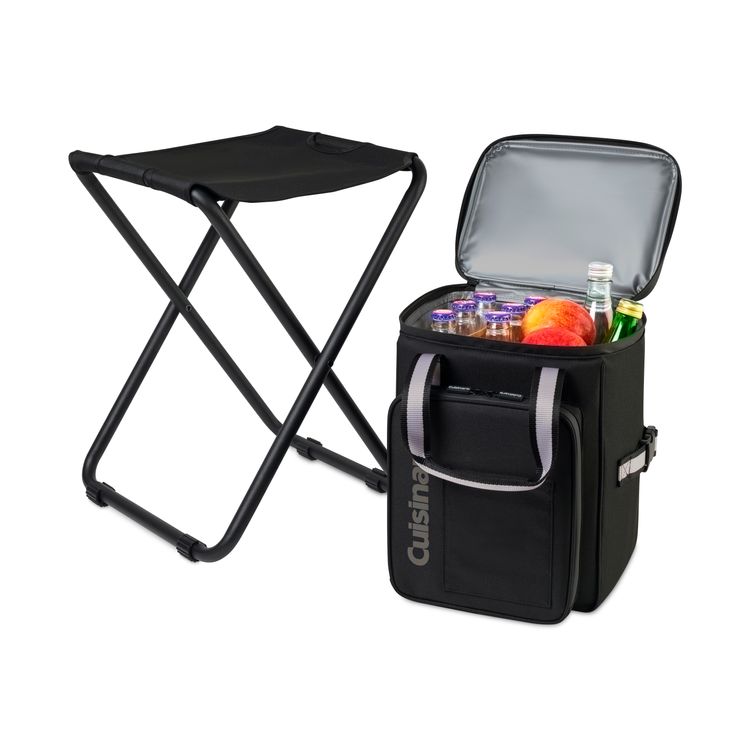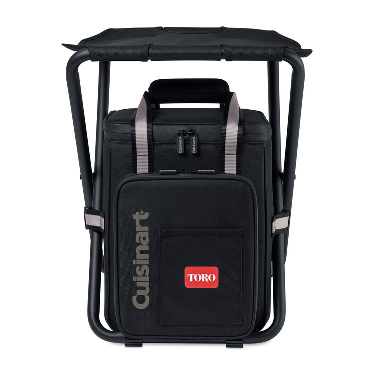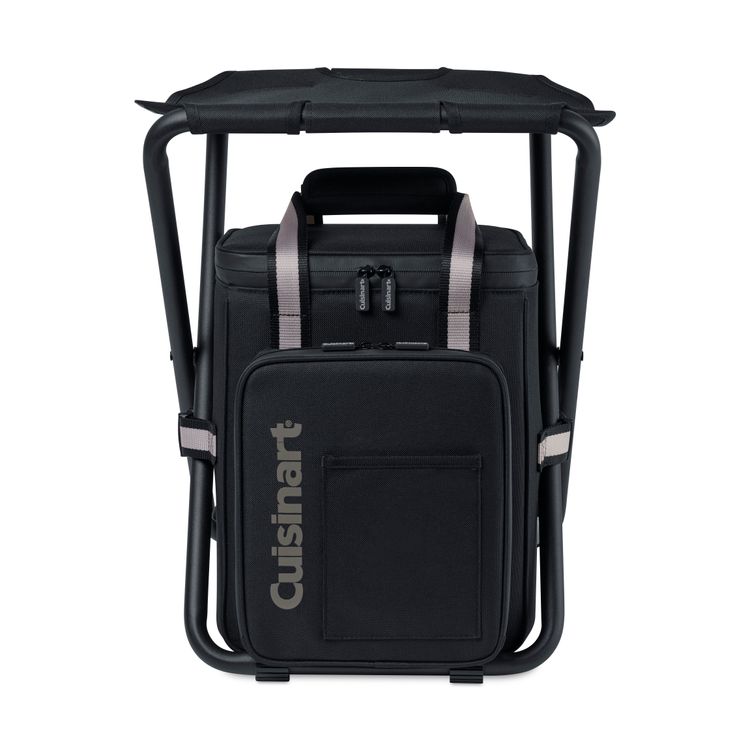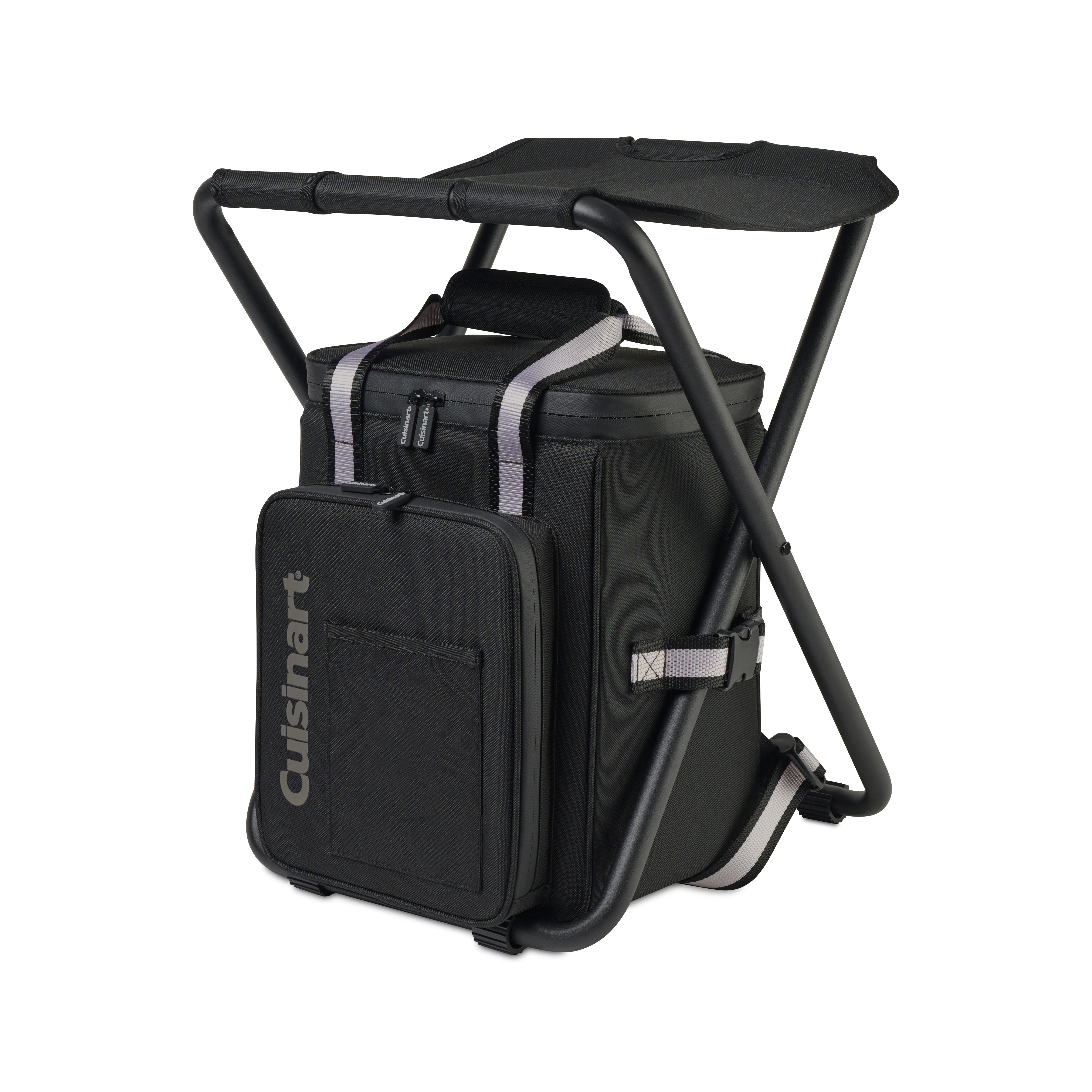 Sit, carry, chill. The Cuisinart Outdoorsâ„¢ Folding Chair Backpack Cooler combines a portable chair, insulated cooler, and backpack in one. It holds up to 15 cans, keeps drinks cold for 16+ hours, and features padded straps, a water bottle holder, and a front pocket for essentials. Compact, sturdy, and built for outdoor adventures. 250 lb capacity limit/chair Capacity 15, 12 oz cans Additional decoration charges may apply.