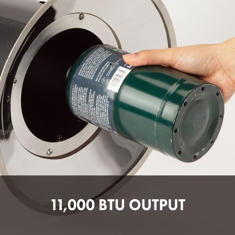 The propane heater can also be connected to a 20-lb. propane tank for longer use, with an optional hose/regulator (not included)