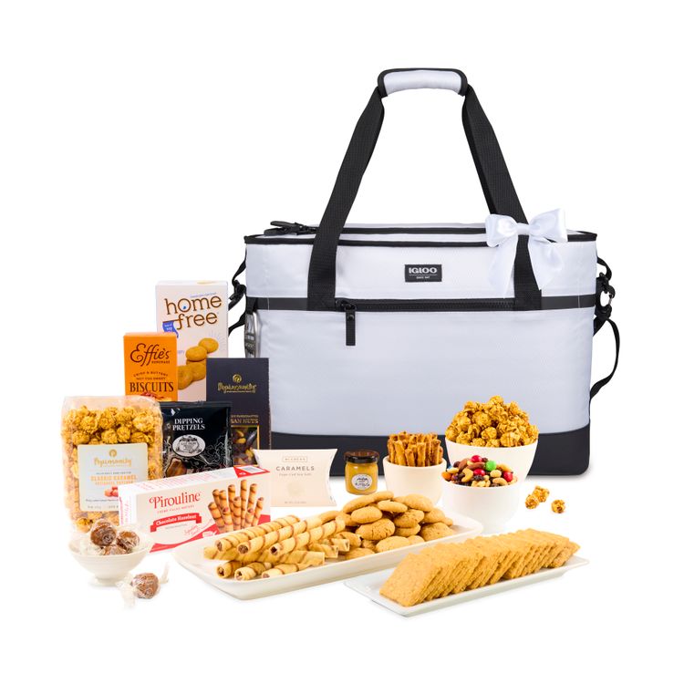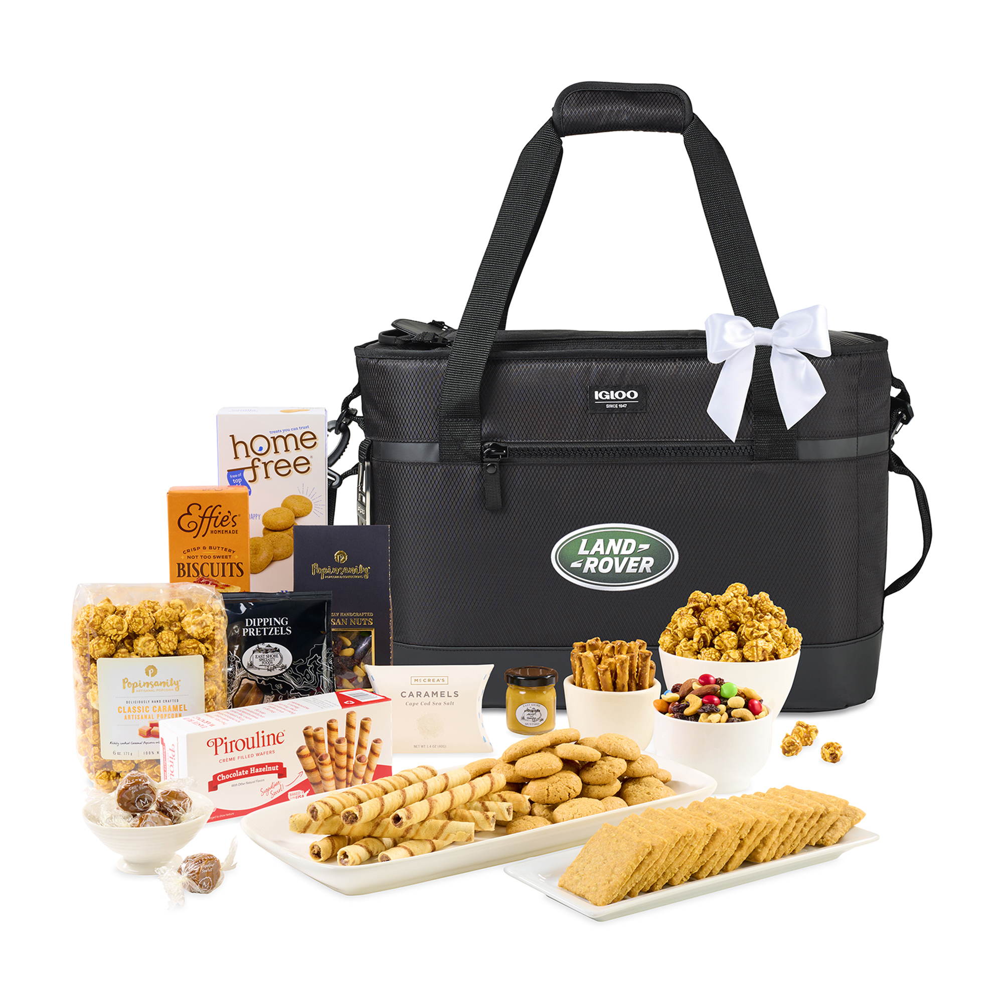 The Downtime Days Gourmet Cooler is a gift that delights long after the treats are gone. Packed with premium snacks like popcorn, cookies, pretzels, and more, all nestled inside the Igloo® Maddox XL Cooler with MaxCold® insulation, it’s a stylish and practical way to say thank you. To include a greeting card with each gift please reference items # 101566, 101567, 101568, 101569 Food contents may vary from what is shown, based on available inventory a substitute of similar or greater value will be used SBN Additional decoration charges may apply.