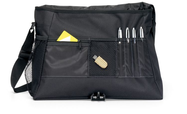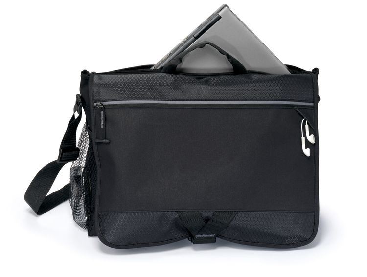 Protect important data and tech gadgets while on the go with this stylish computer messenger bag. Padded back computer pocket (fits up to: 15.4" laptop). Front zippered pocket with earphone outlet for MP3 player. Side mesh pocket for water bottle (water bottle not included). Large main compartment. Multi-function organizer located under front flap. Front zippered pocket sized to fit up to a 10" tablet with a case SBN Additional decoration charges may apply.