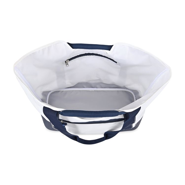 The Harborside Medium Boat Bag blends classic style with nautical flair. Designed with dual carry options, interior and front zippered pockets, and a water-resistant TPU-coated bottom, it’s a versatile tote perfect for everyday use or seaside escapes. PVC Free Product SBN 1.85 Additional decoration charges may apply.