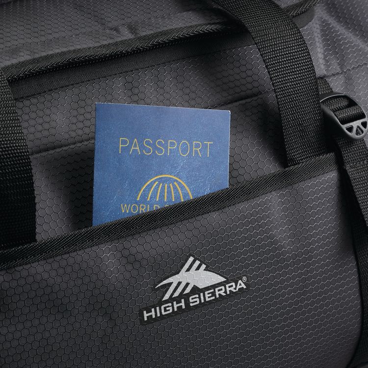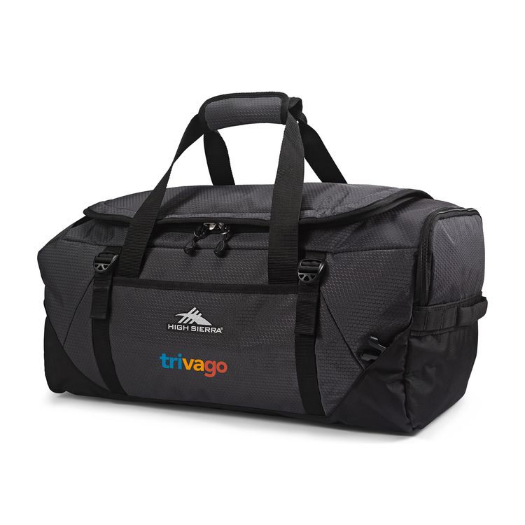 The High Sierra® Fairlead Convertible Duffel adapts to your journey with a design that transforms from duffel to backpack. Featuring a storm-flap zip opening, quick-stash pockets, compression straps, and padded handles, it’s built for everyday use or weekends away. Padded carrying handles Additional decoration charges may apply.