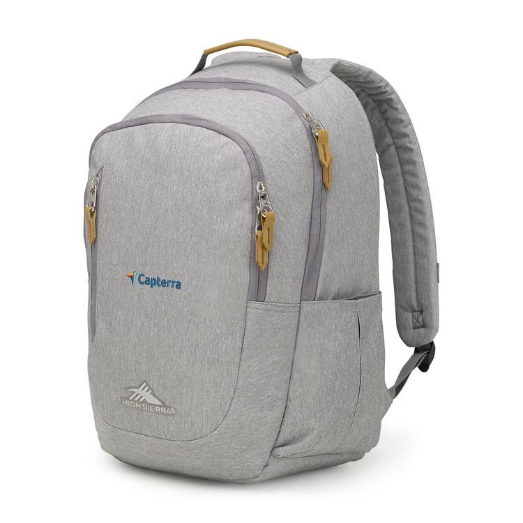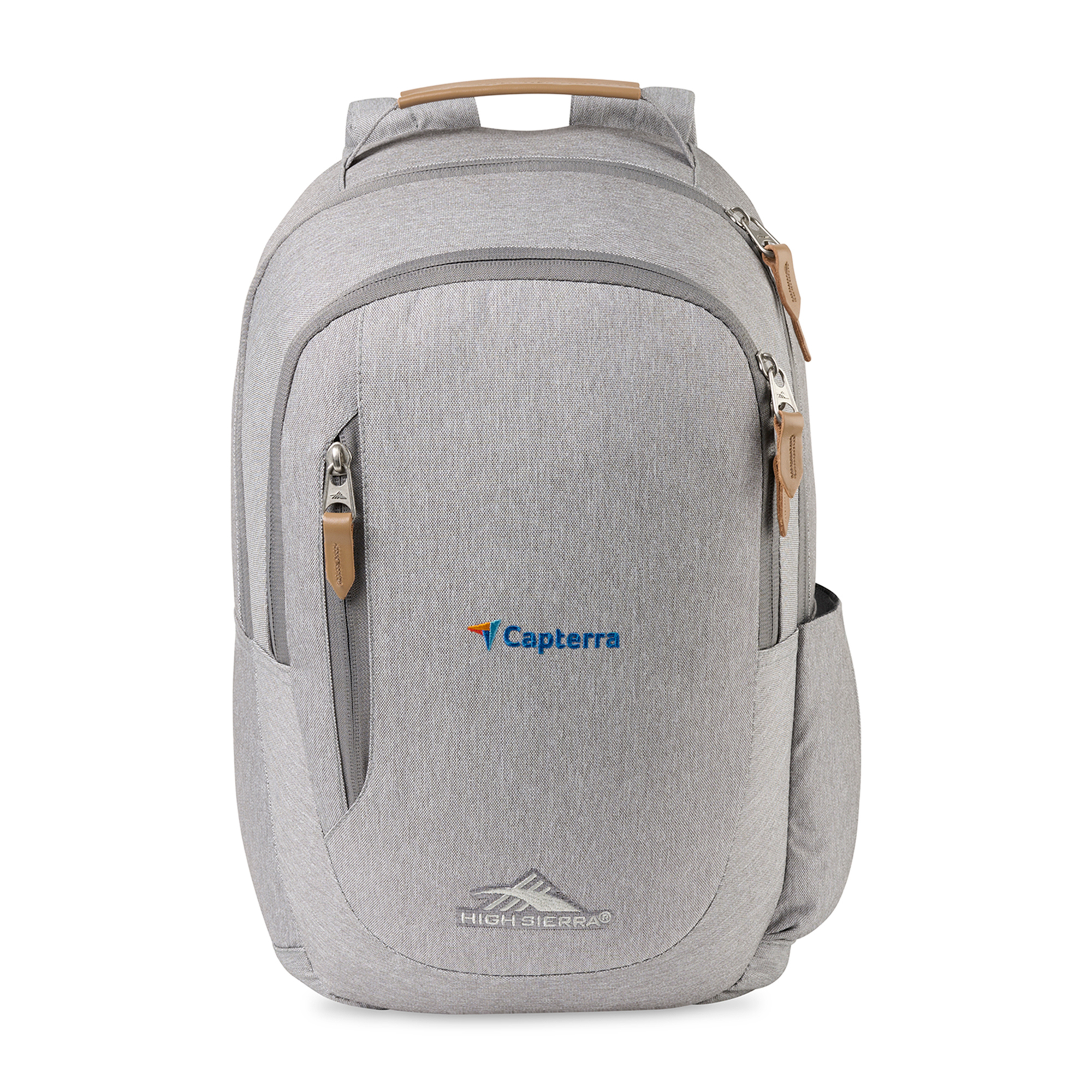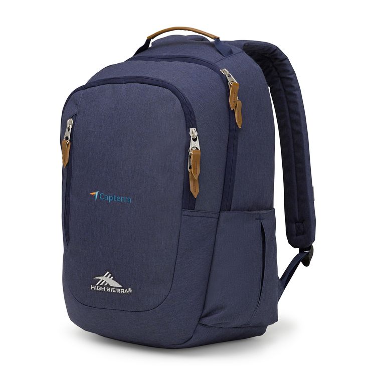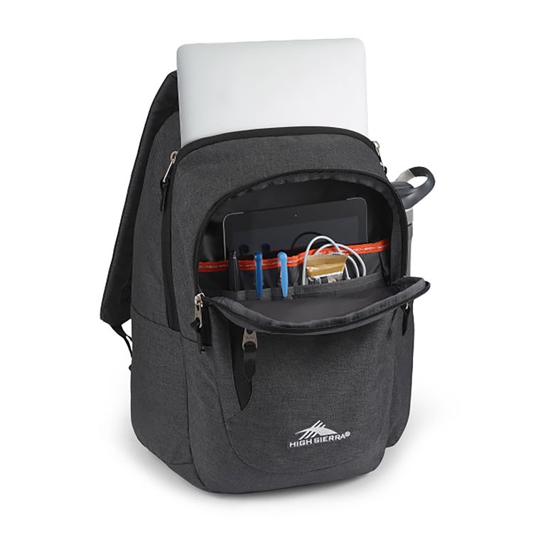 The High Sierra® Haidan Laptop Backpack keeps you organized on the go with a spacious main compartment, fleece-lined laptop sleeve (fits 15"), tablet sleeve (fits 14"), and multiple accessory pockets. Padded straps and back panel ensure all-day comfort, with a top grab handle for quick carry. Comfortable padded back panel Convenient top grab handle Additional decoration charges may apply.
