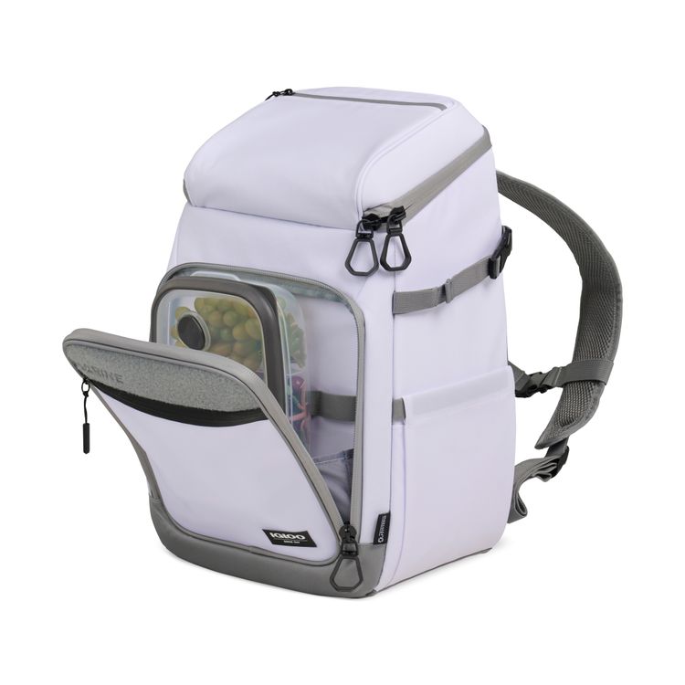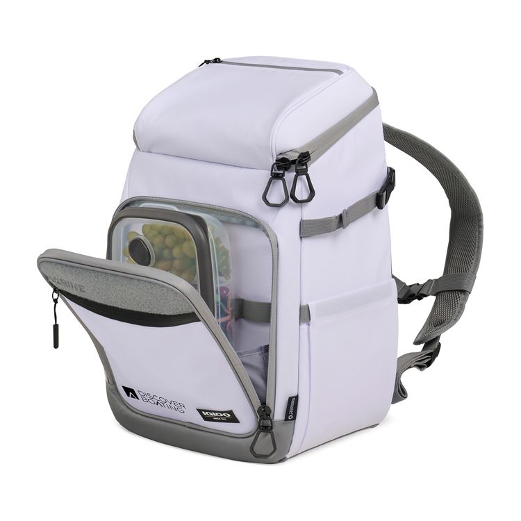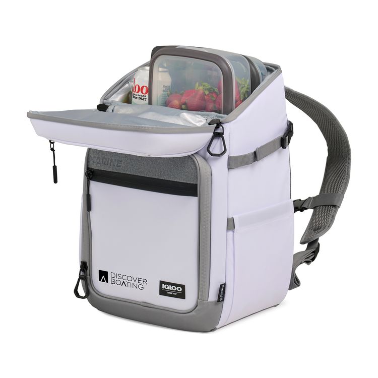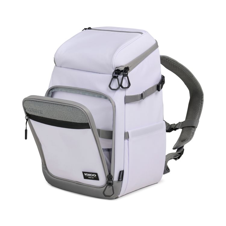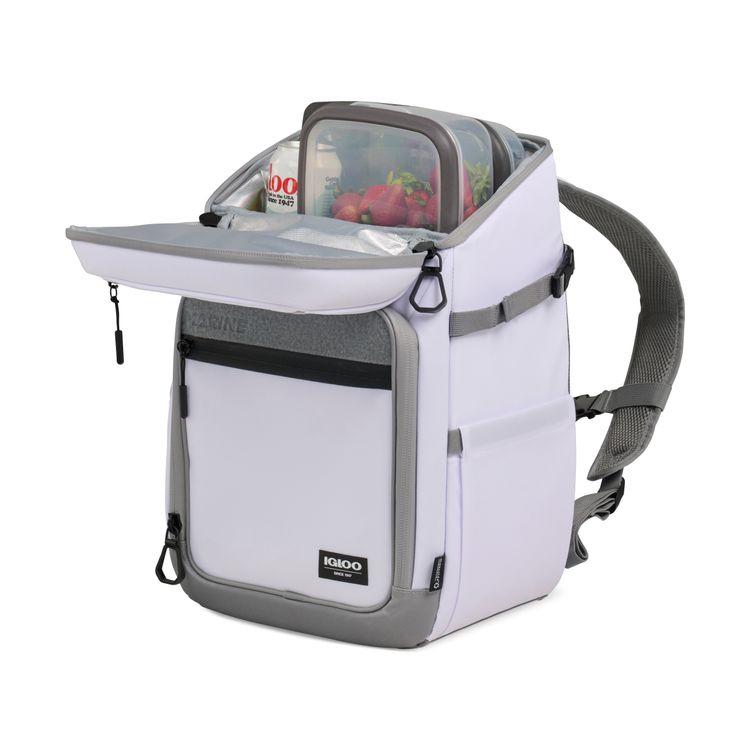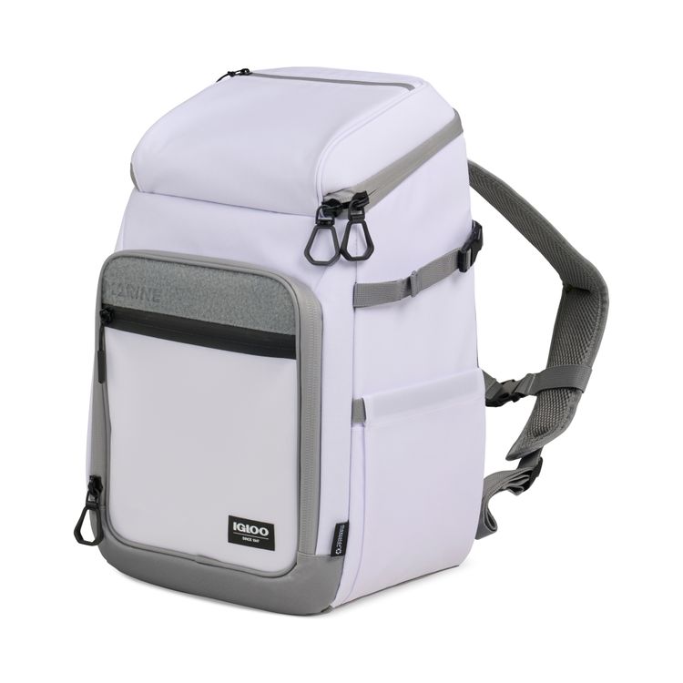 Hands-free cooling for any adventure. The Igloo® Marine Backpack 30 Cooler keeps up to 30 cans cold with MaxCold+® insulation and a leak-resistant PEVA liner. Its TPU-coated exterior resists water, dirt, and sand, while fishing-friendly storage, expandable side pockets, and a touch-screen compatible pocket add convenience. Padded backpack straps make carrying effortless. Adjustable, padded air mesh backpack straps with sternum strap for hands-free carrying convenience Expandable pockets on side can fit a beverage or a fishing rod Accessories and ice packs not included - holds 30 standard size cans PVC free product Additional decoration charges may apply.