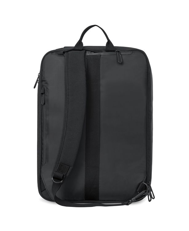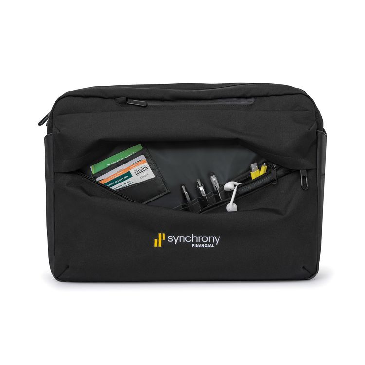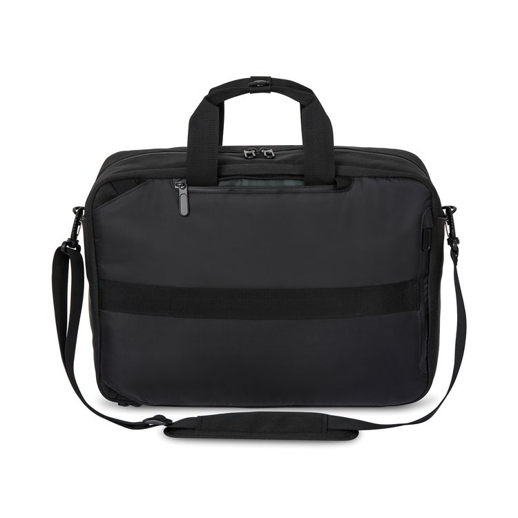 4 in 1 design! The versatility of this bag provides multiple carrying options. Use it as a portfolio, a messenger bag, backpack, or a sling bag. The rain flap over the front zippered pocket helps protect your belongings from the elements Top grab handles unzip and pull out of zippered compartments and easily tucks away to conceal when not in use as a portfolio Backpack straps and locker loop unzip and pull out to attach to d-ring hardware and tucks away to conceal when not in use as a backpack Removable, adjustable shoulder strap with hardware that tucks away to conceal when not in use as a messenger bag or sling bag Zipper pulls can be locked together for security purposes when traveling (security lock not included) Trolley strap feature slips over luggage handle for easy transport SBN 4.11 Additional decoration charges may apply.