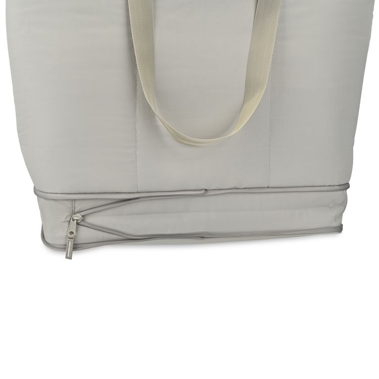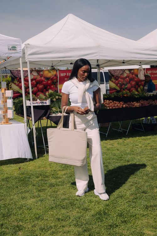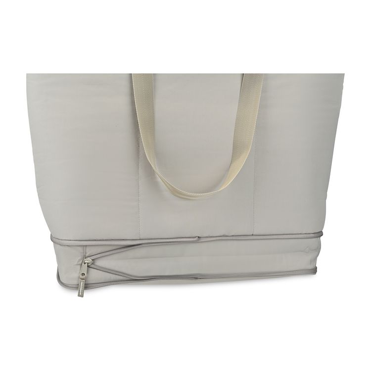 In a soft latte-color to complement the clean lines and quilting that keep this minimalist tote extra cool with an air of athleisure