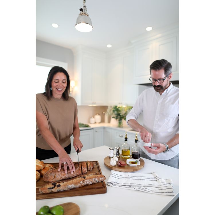 this board also provides stability during carving and is handsome enough to keep out on the counter