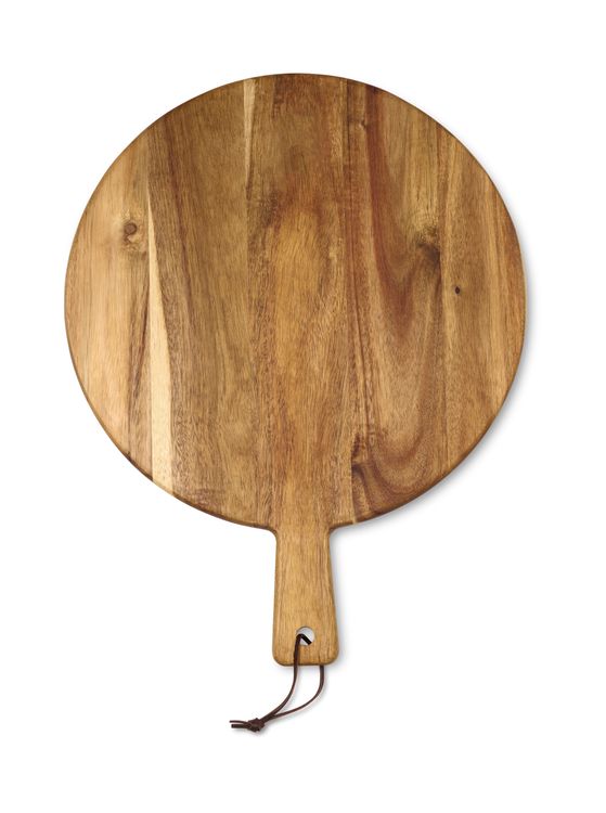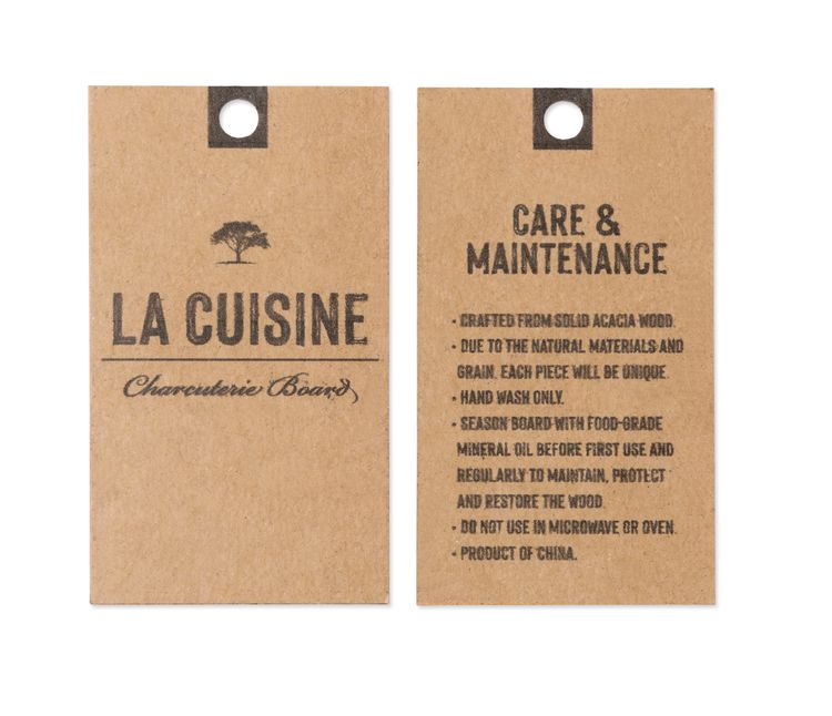 Handcrafted of stunning acacia wood, our La Cuisine Serveware was inspired by the love of a French Charcuterie. Whether you're cutting vegetables or cheese, serving guests or simply leaving it hanging in your kitchen, this board has as much functionality as they do beauty. Rawhide hanging loop. Due to the natural materials, each piece will be unique. Hand Wash Only. Made in China. Made in China PVC Free Product Bamboo and wood products are prone to color variances and will vary between lots Due to the nature of bamboo and wood material, variations in laser imprinting quality and consistency may occur All wood boards will show knife marks when used for cutting and chopping. To maintain use and care, treating board with food grade mineral oil is recommended SBN Additional decoration charges may apply.