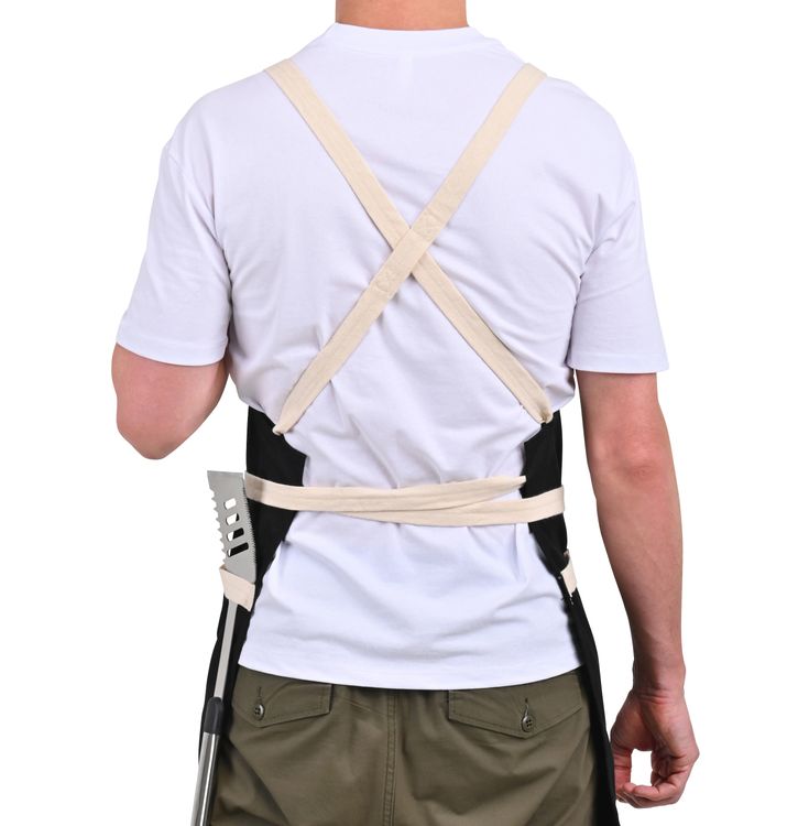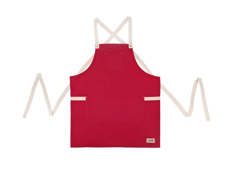 The La Cuisine Cotton Apron features a cross-back strap design that adjusts to fit folks XS to XXL while taking pressure off your neck and distributing the weight across your shoulders and back for marathon-wearing comfort