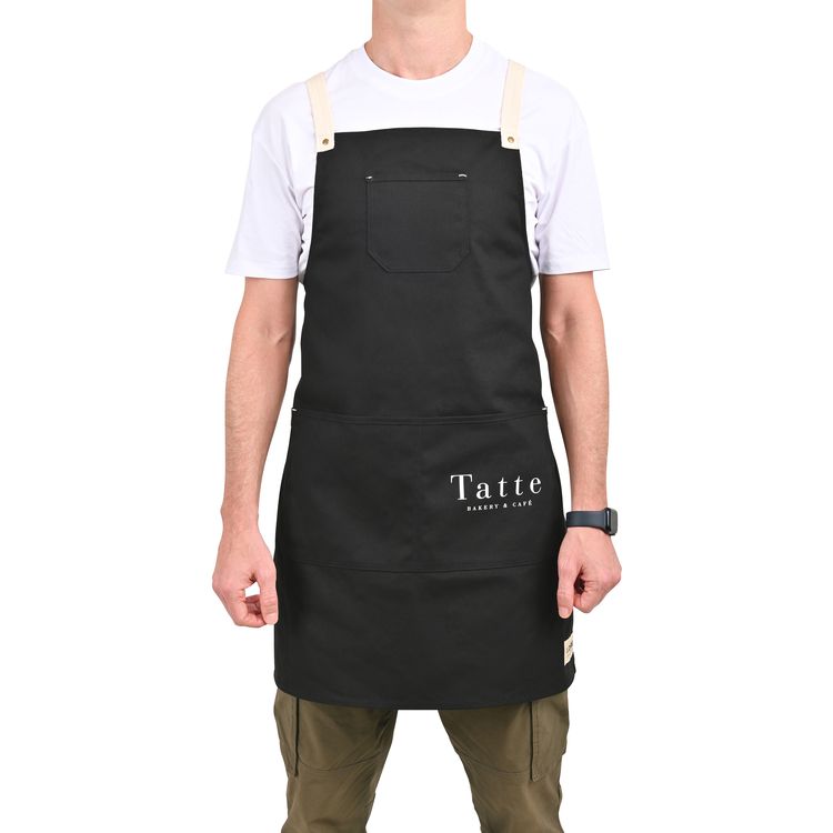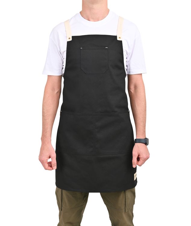 A stylishly versatile prep apron designed to protect clothes from spill and splatters