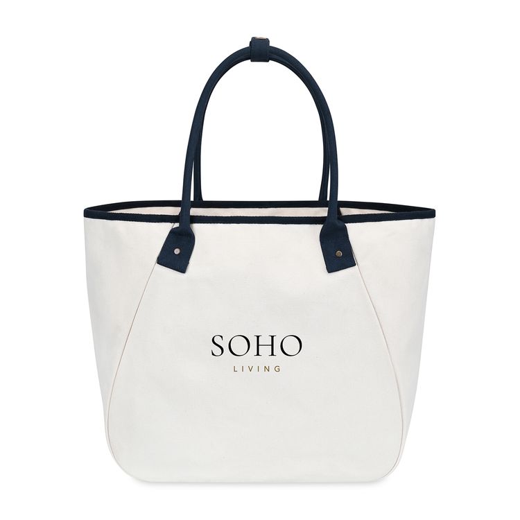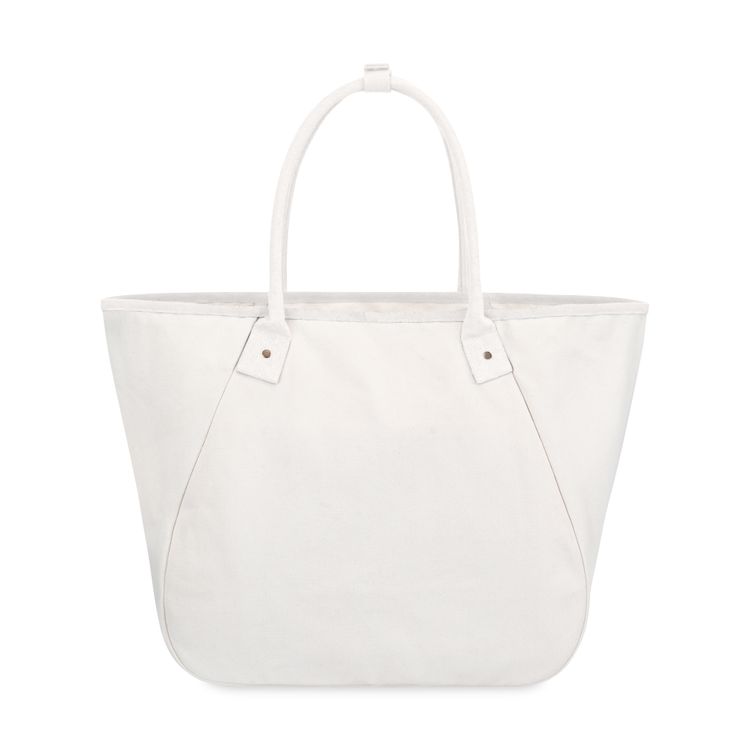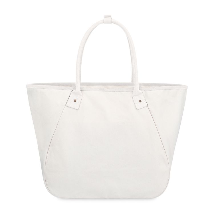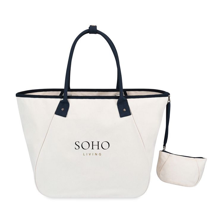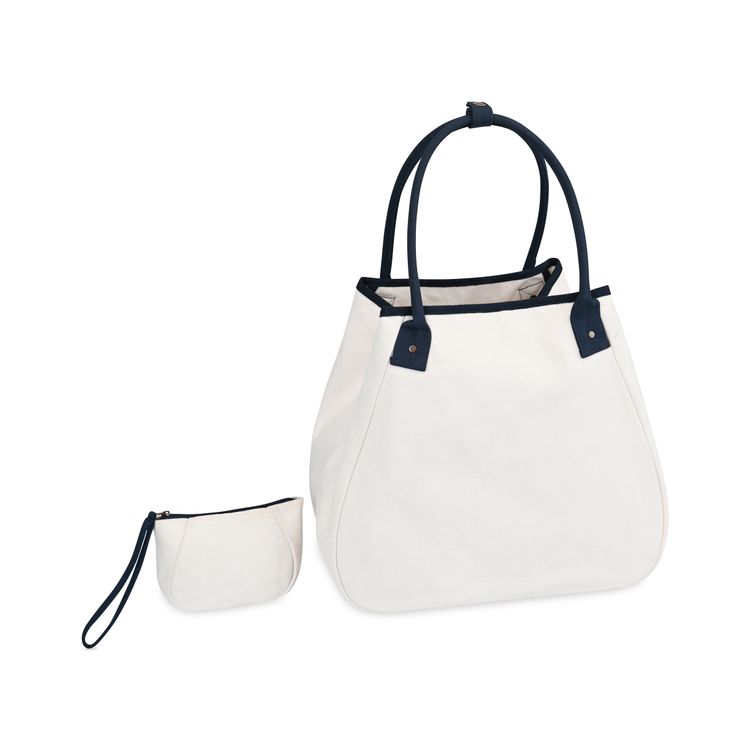 Elevate your everyday with the Market Street Tapered Carryall Tote—an XL cotton canvas essential that blends effortless style with smart design. Perfect for work, travel, or weekends, it features a roomy interior with a snap hook closure and a removable pouch with wristlet strap for easy organization. The pouch tucks neatly into the large interior slash pocket (8.5"L x 5.5"H). Practical, polished, and PVC-free—this tote does it all. New SBN 9.82 Additional decoration charges may apply.
