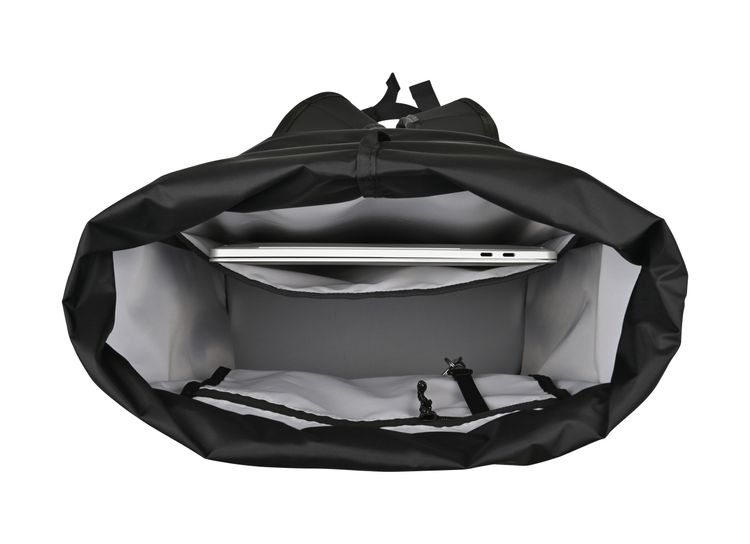 Cinch top opening to large main compartment