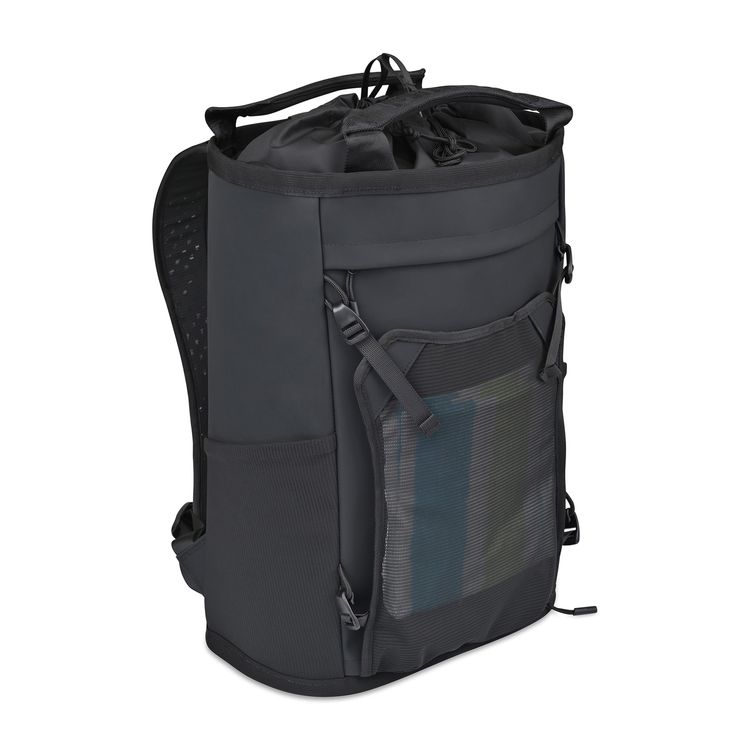 The MiiR® Bahia 28L Backpack transitions seamlessly from work to weekends. Built with recycled materials and a durable TPU coating, it features a cinch-top main compartment, padded laptop sleeve (fits 15"), versatile front cargo net, dual water bottle pockets, and padded straps for all-day comfort. Dual side elastic mesh water bottle pockets fits a 20 Oz Wide Mouth perfectly (#100275) Premium padded shoulder straps and back panel with sternum strap Padded top grab handle with jacquard webbing detail CARBONFREE Additional decoration charges may apply.