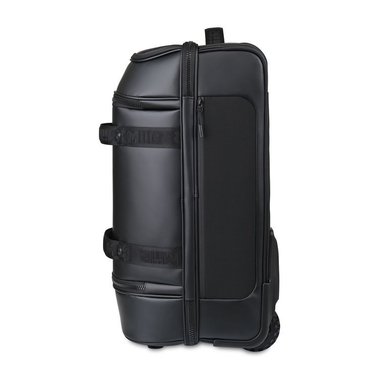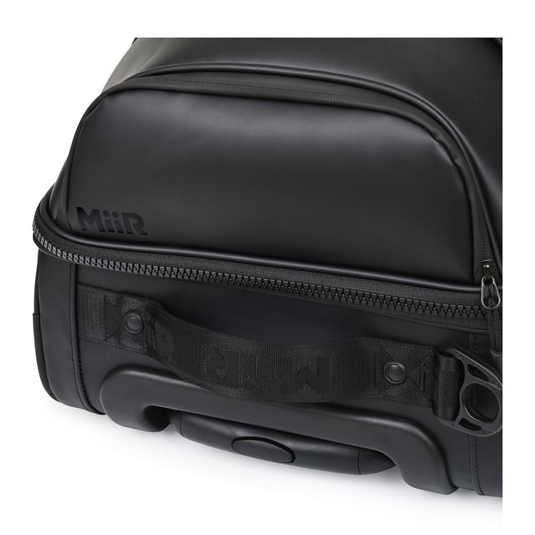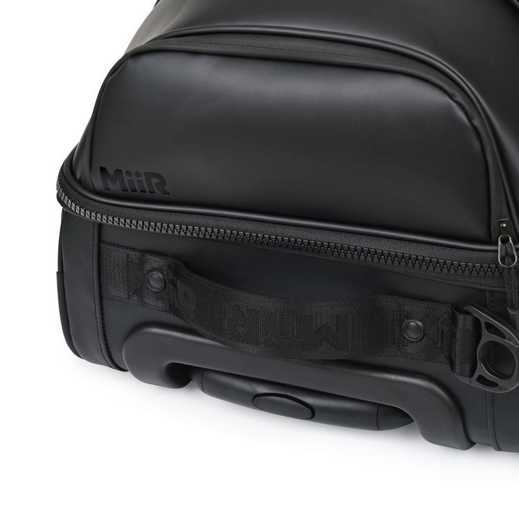 The MiiR® Bahia 50L Wheeled Duffel is built for work trips and weekend adventures alike. Made with recycled materials and TPU coating, it features dual compartments with packing cubes, a 15" laptop sleeve, tricot-lined quick-access pocket, and oversized wheels for smooth rolling on any terrain. Dual side elastic mesh water bottle pockets fits a 20 Oz Wide Mouth perfectly (#100275) Oversized 2-wheel system that easily navigates through grass, gravel, and even sand Fits into most overhead bins, airlines may vary CARBONFREE Additional decoration charges may apply.