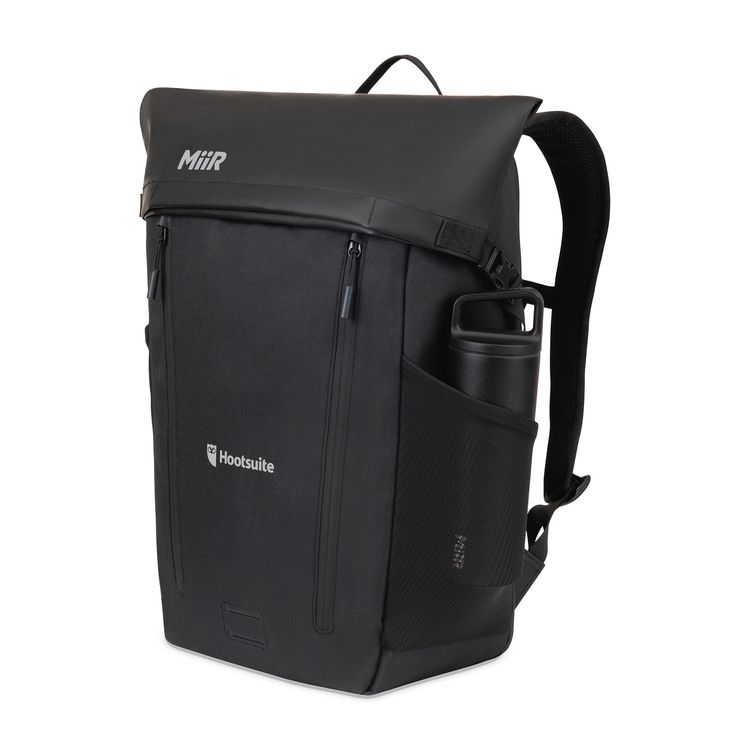 The MiiR® Olympus 2.0 25L Laptop Backpack blends modern design with everyday durability. Made with recycled materials and AWARE™ textile tech, it features a roll-top closure, padded laptop sleeve (fits up to 15"), dual zip pockets, and mesh water bottle holders. Built to move with you—commute to trail. Dual zippered front pockets to large main compartment Recycled nylon key fob Recycled POM pullers and recycled poly cord Reflective logo accent details for added safety at night Dual side elastic mesh water bottle pockets fits the 20 Oz. Wide Mouth perfectly (#100275) Interior mesh organizer panel with zippered mesh pocket Premium padded shoulder straps and back panel Top grab handle PVC Free Product CARBONFREE AWARE 3.30 Additional decoration charges may apply.