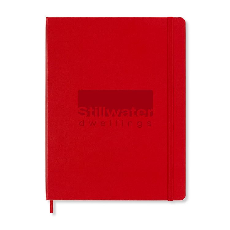 Write your next marketing success story with help from this Moleskine (R) hardcover ruled extra-large notebook. Available in black or slate grey, this handy product features rounded corners, a bookmark and an elastic strap closure. It also has 192 acid-free paper pages (96 sheets) and an expandable inner pocket. It comes packaged with a Moleskine branded ivory paper band and individually shrink wrapped. Customize with a brand imprint to create a memorable gift or incentive. Certified FSC. Notebooks come packaged with a Moleskine retail paper band. Shrink-wrapping is available for an additional charge Add a Custom Band (Item # 426) This Notebook is also FSC®-certified (FSC® C175379) ensuring it comes from responsibly managed forests that provide environmental, social, and economic benefits PVC Free Product Additional decoration charges may apply.