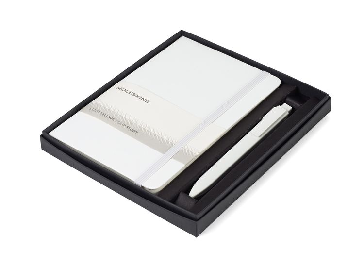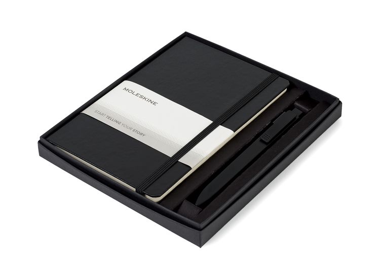 This gift set includes one Hard Cover Ruled Medium Notebook and one GO Pen packaged in a two-piece Moleskine gift box