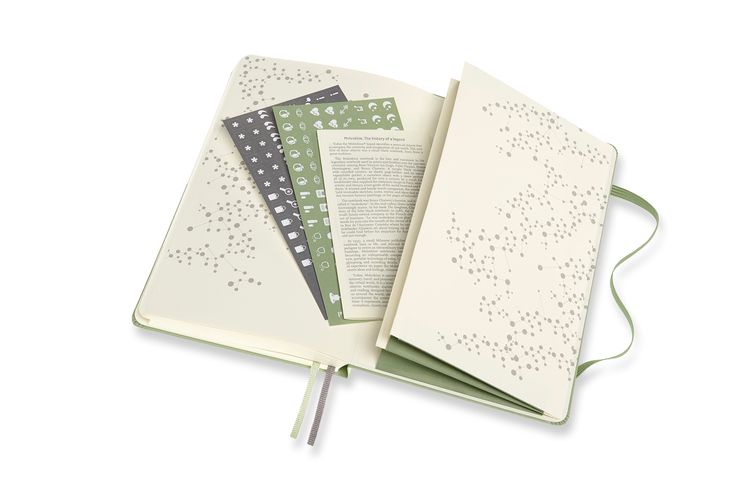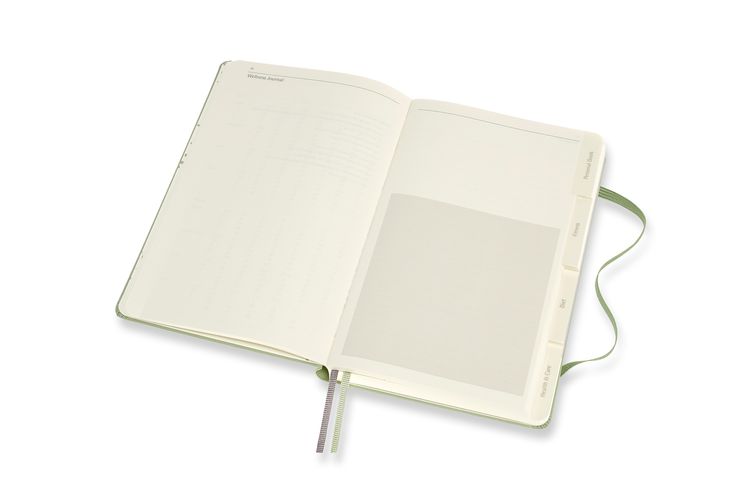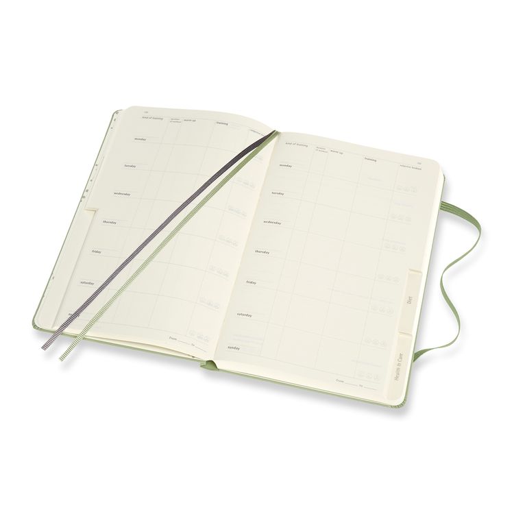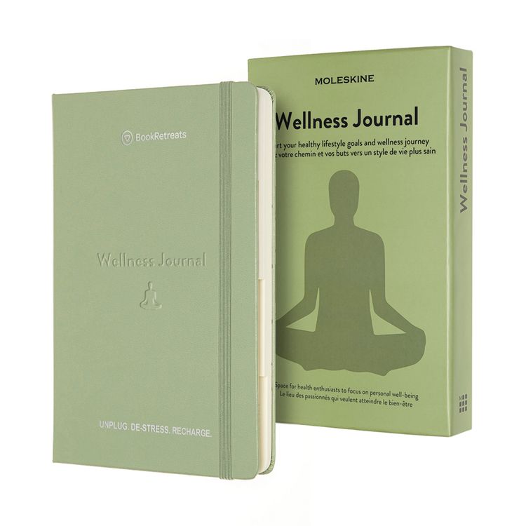 The Wellness Journal is designed to grow into a permanent and uniquely customized record of your fitness, nutrition and wellness journey, tracking all your healthy lifestyle goals along the way. The intro pages are full of nutrition tips, exercises to increase muscle mass and practical fitness facts, while four dedicated and structured sections allow you to divide your progress between Personal Goals, Fitness, Diet, and Health & Care. Plain pages at the back make space for extra notes. Tabbed sections to guide your note-taking Themed introductory pages 400 pages Themed stickers to customize your journal Journals come packaged in a premium Moleskine gift box. Journals will not include a Moleskine retail paper band. Shrink-wrapping is available for an additional charge PVC Free Product FSC Additional decoration charges may apply.