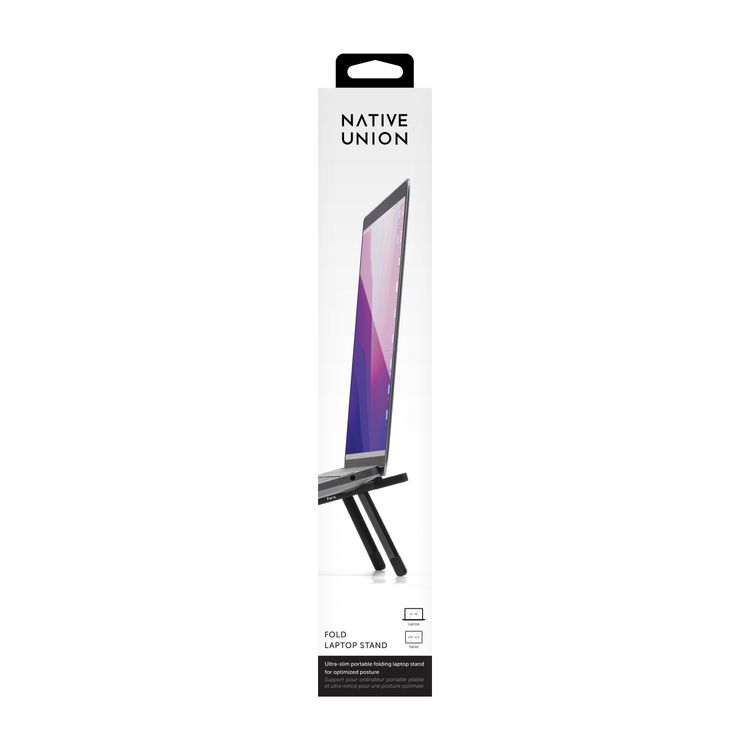 Work anywhere, comfortably. The Native Union Fold Laptop Stand elevates your laptop or tablet for better posture and airflow, all in a lightweight, ultra-slim design that folds flat for travel. Crafted from durable aluminum with non-slip pads for stability, it supports devices from 13–16" laptops to 10.2–16" tablets. Includes a protective carry pouch. Compatible with MacBooks and Laptops 13-16" Compatible with tablets 10.2-16" Gift box dimensions: 13.46"L x 0.98"H x 2.36"W New Additional decoration charges may apply.