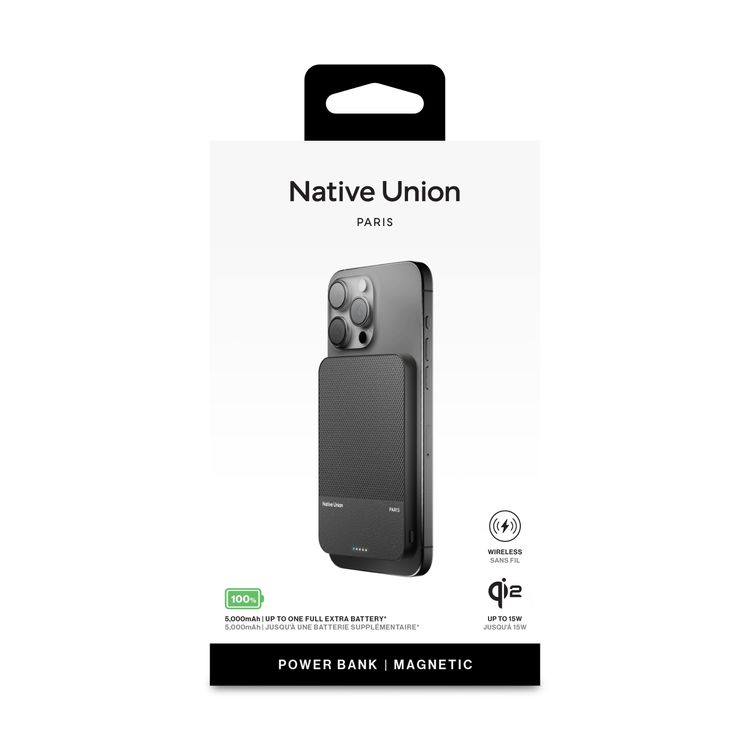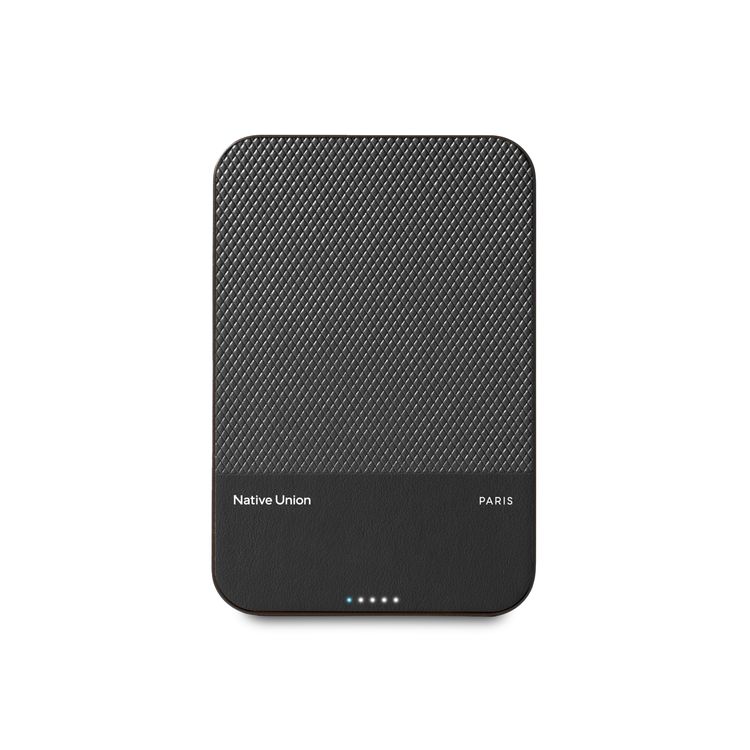 Slim power, classic style. The Native Union (RE)Classic Magnetic Power Bank 5000mAh delivers up to 15W wireless or 20W wired fast charging in an ultra-slim, MagSafe-compatible design. Wrapped in recycled animal-free leather, it fully charges an iPhone 15 Pro on the go. Features pass-through charging, built-in safety protections, and a two-way USB-C port. This product supports wireless charging for MagSafe, Qi2, AirPods Pro (2nd Gen and 1st Gen with MagSafe Charging Case), and other Wired compatible with iPhone 7 or earlier, AirPods (1st & 2nd Gen), iPad Includes: (Re)Classic Power Bank, 15 CM Braided Cable USB-C to USB-C Gift box dimensions: 4.25"L x 7.20"H x 0.71"W New Additional decoration charges may apply.